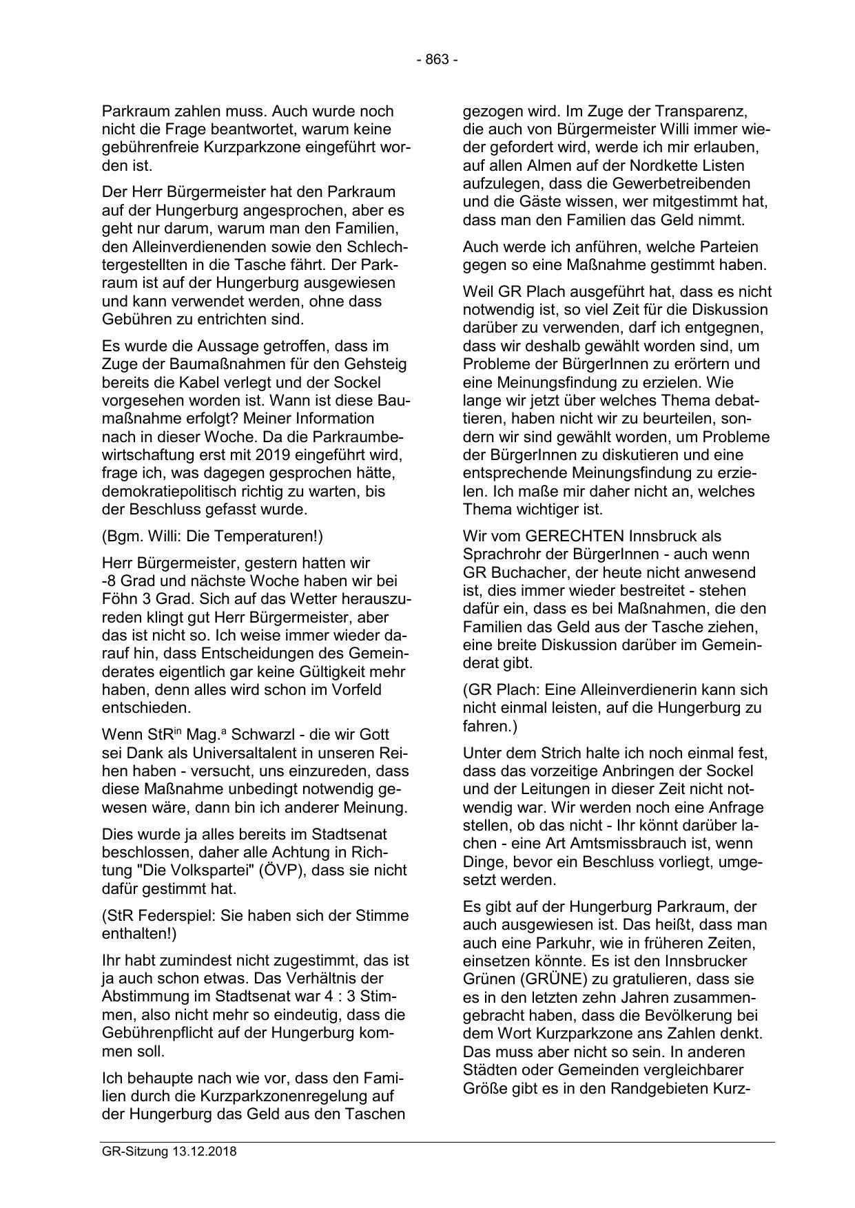 den Alleinverdienenden sowie den Schlechtergestellten in die Tasche fährt. Der Parkraum ist auf der Hungerburg ausgewiesen