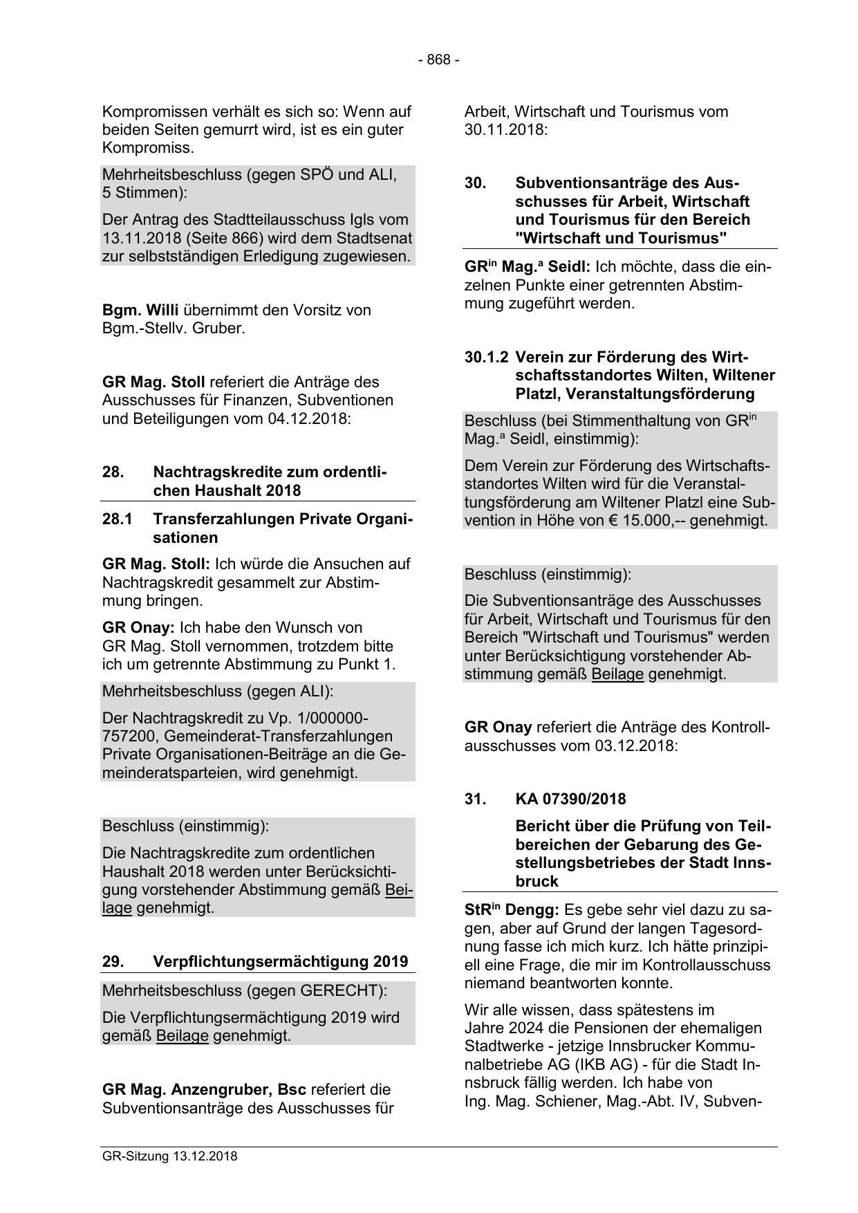 13.11.2018 (Seite 866) wird dem Stadtsenat