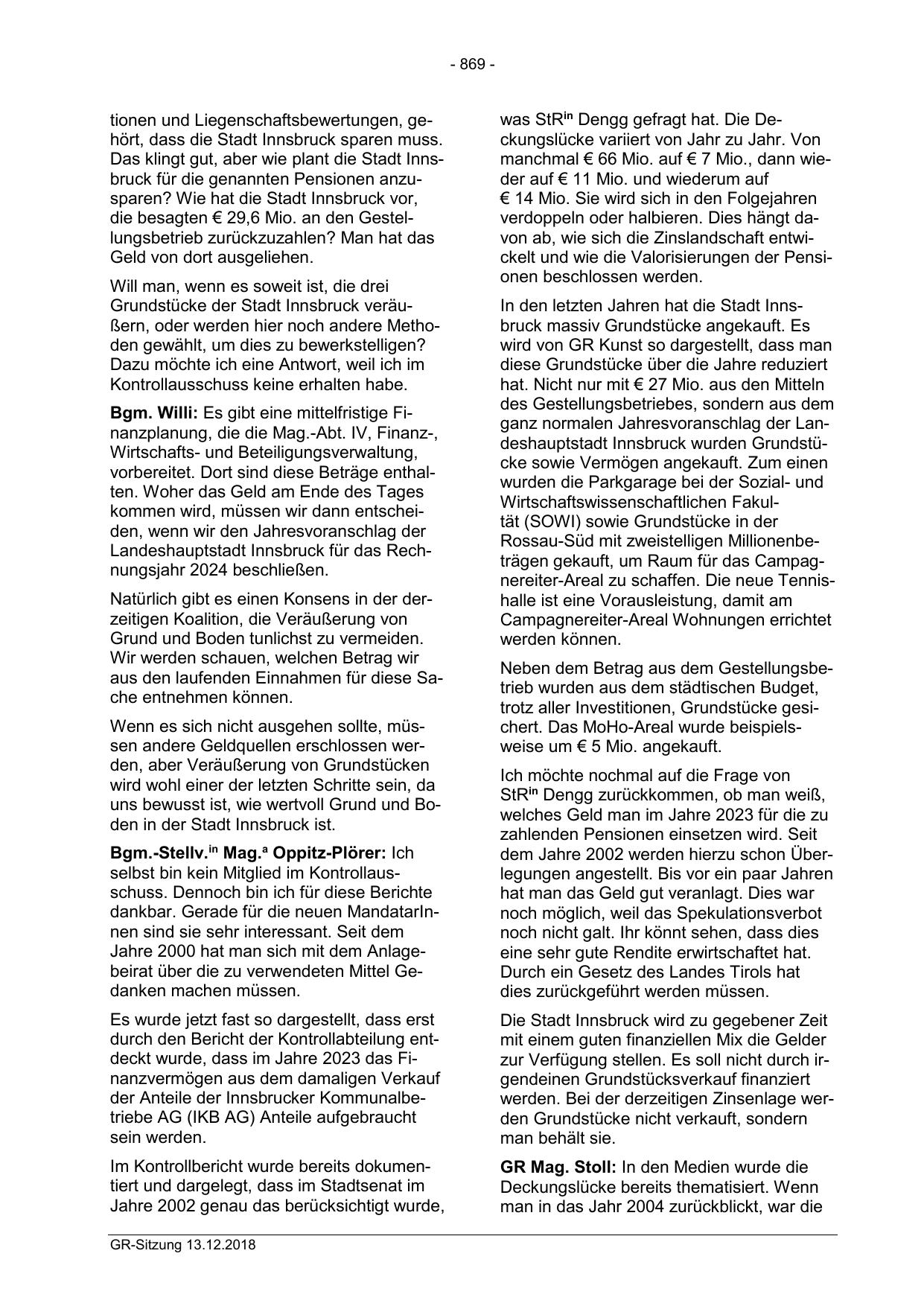 Das klingt gut, aber wie plant die Stadt Innsbruck für die genannten Pensionen anzusparen? Wie hat die Stadt Innsbruck vor,