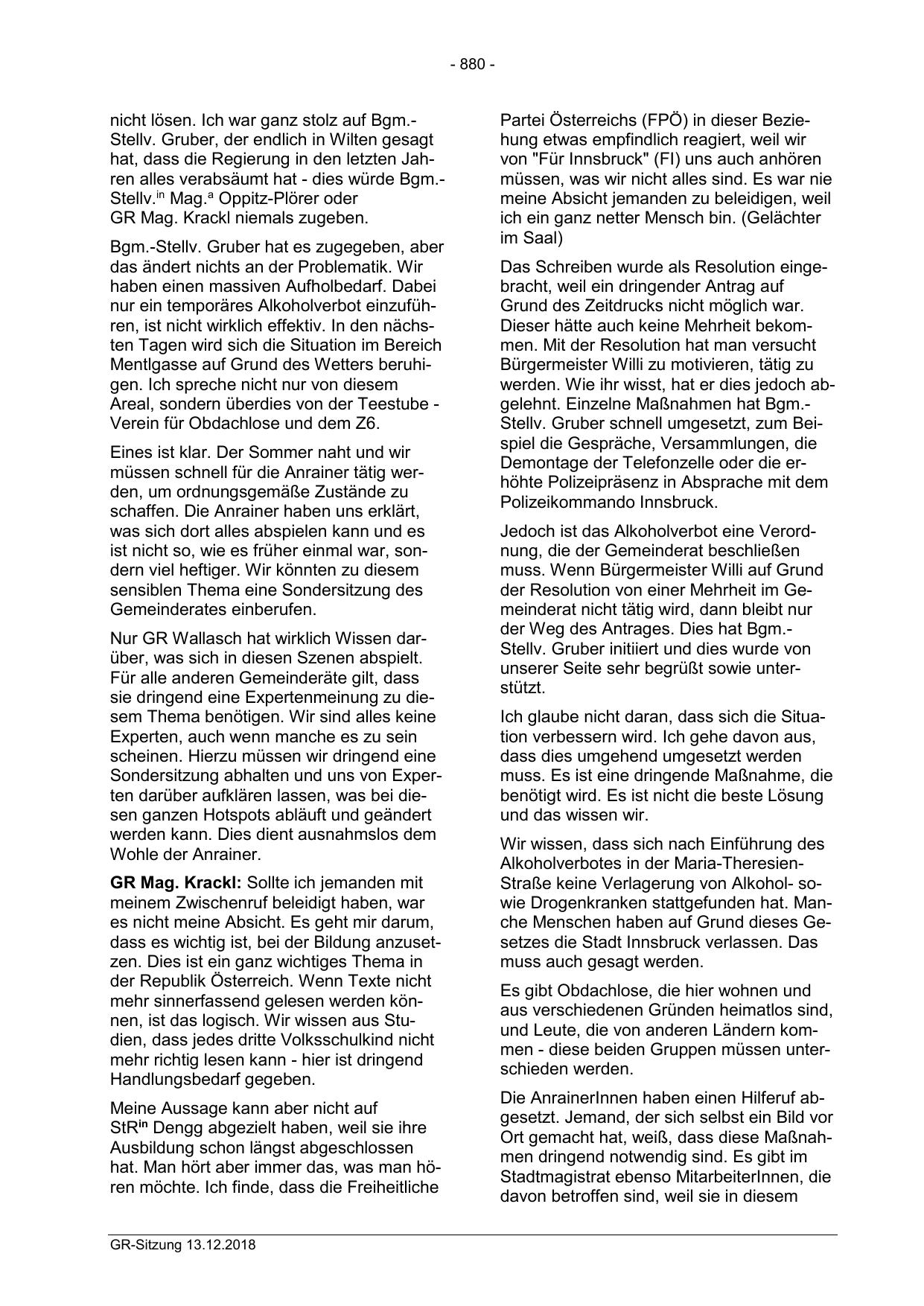 nicht lösen. Ich war ganz stolz auf Bgm.Stellv. Gruber, der endlich in Wilten gesagt