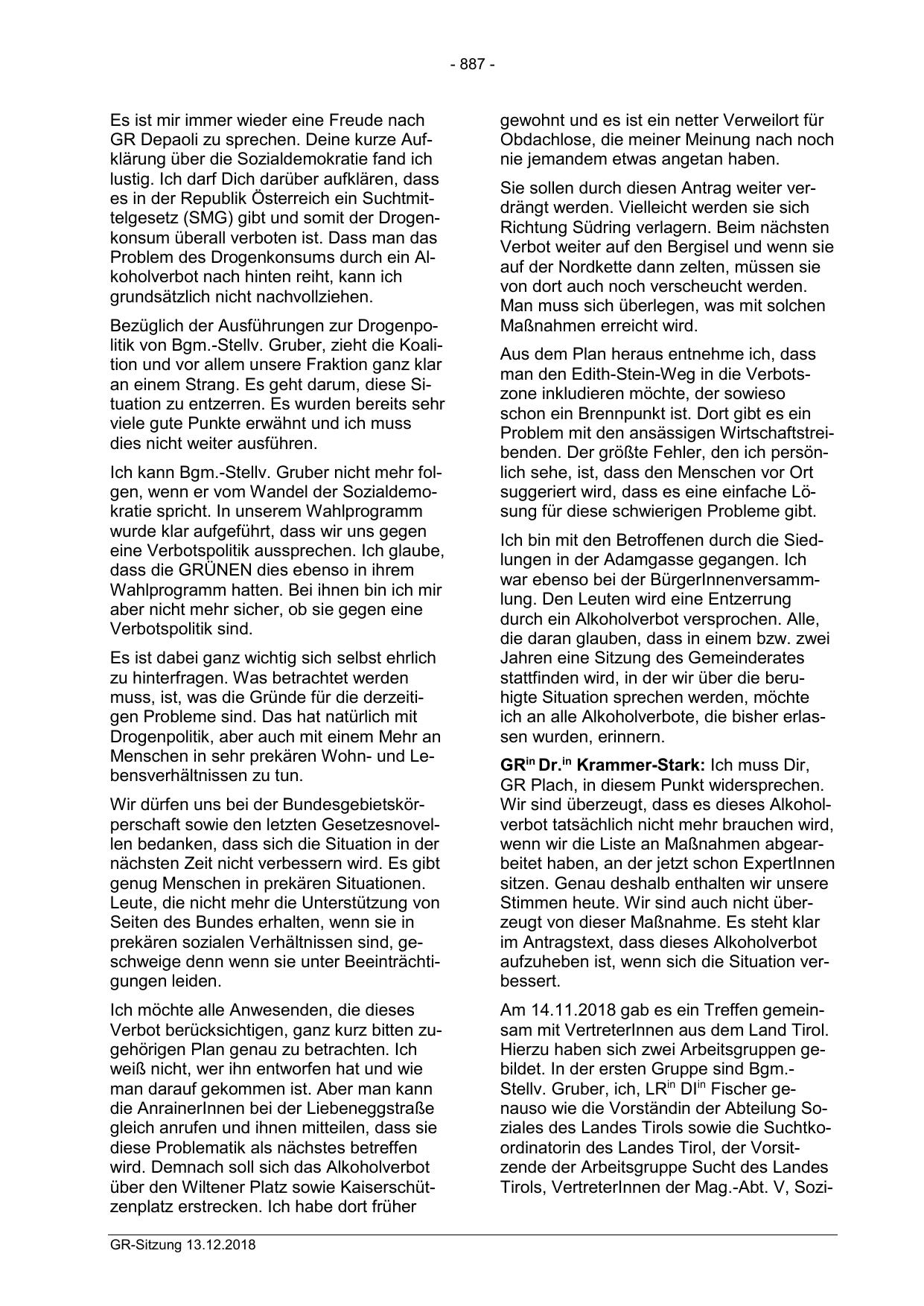 Bezüglich der Ausführungen zur Drogenpolitik von Bgm.-Stellv. Gruber, zieht die Koalition und vor allem unsere Fraktion ganz klar