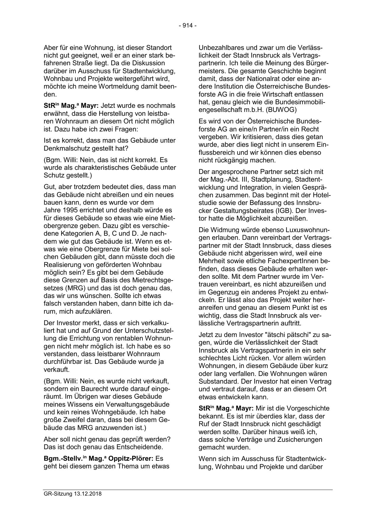 wichtig, dass die Stadt Innsbruck als verlässliche Vertragspartnerin auftritt.