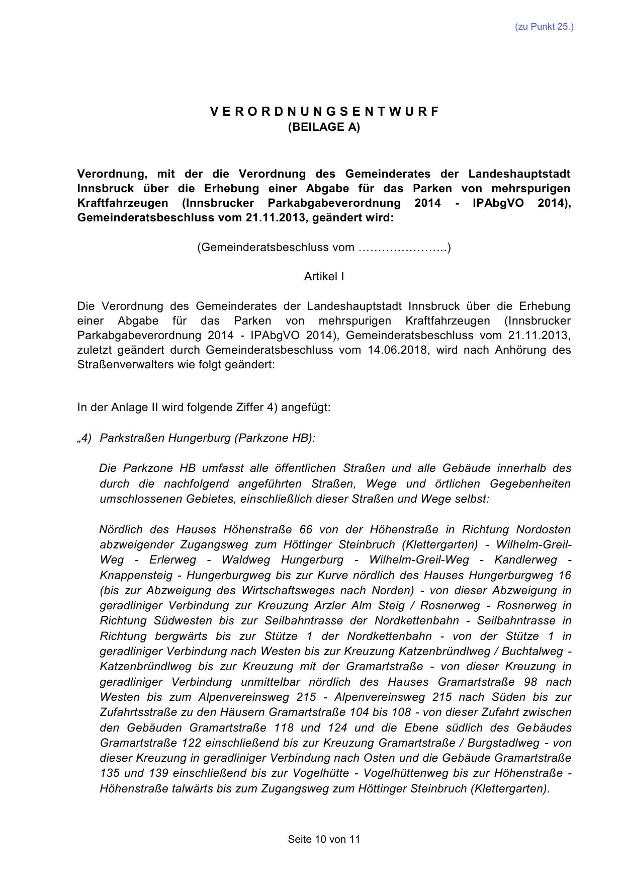 Kraftfahrzeugen (Innsbrucker Parkabgabeverordnung 2014 - IPAbgVO 2014),
