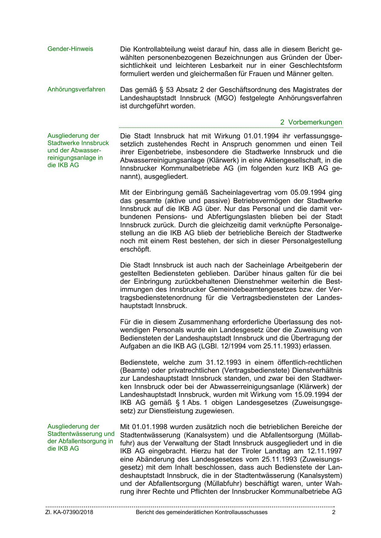Innsbruck auf die IKB AG über. Nur das Personal und die damit verbundenen Pensions- und Abfertigungslasten blieben bei der Stadt