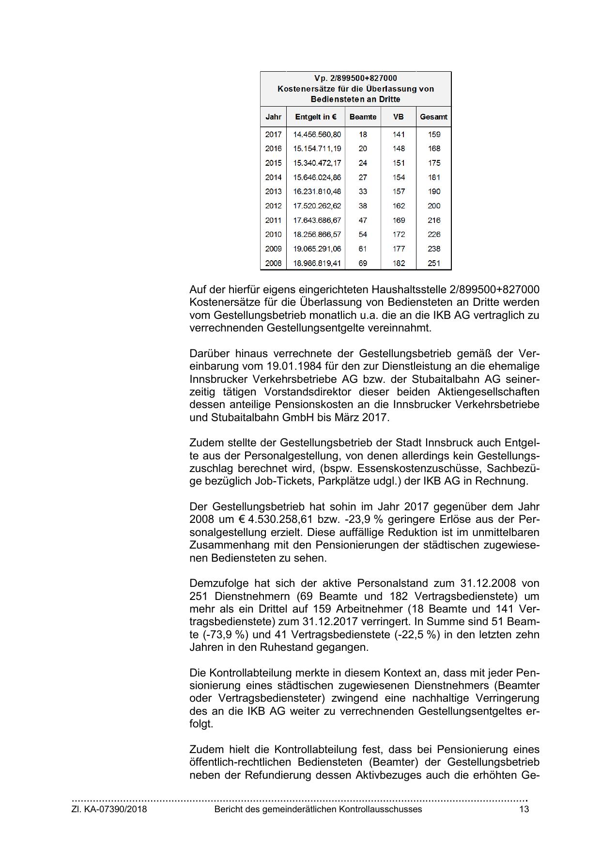 Zudem stellte der Gestellungsbetrieb der Stadt Innsbruck auch Entgelte aus der Personalgestellung, von denen allerdings kein Gestellungszuschlag berechnet wird, (bspw. Essenskostenzuschüsse, Sachbezüge bezüglich Job-Tickets, Parkplätze udgl.) der IKB AG in Rechnung.