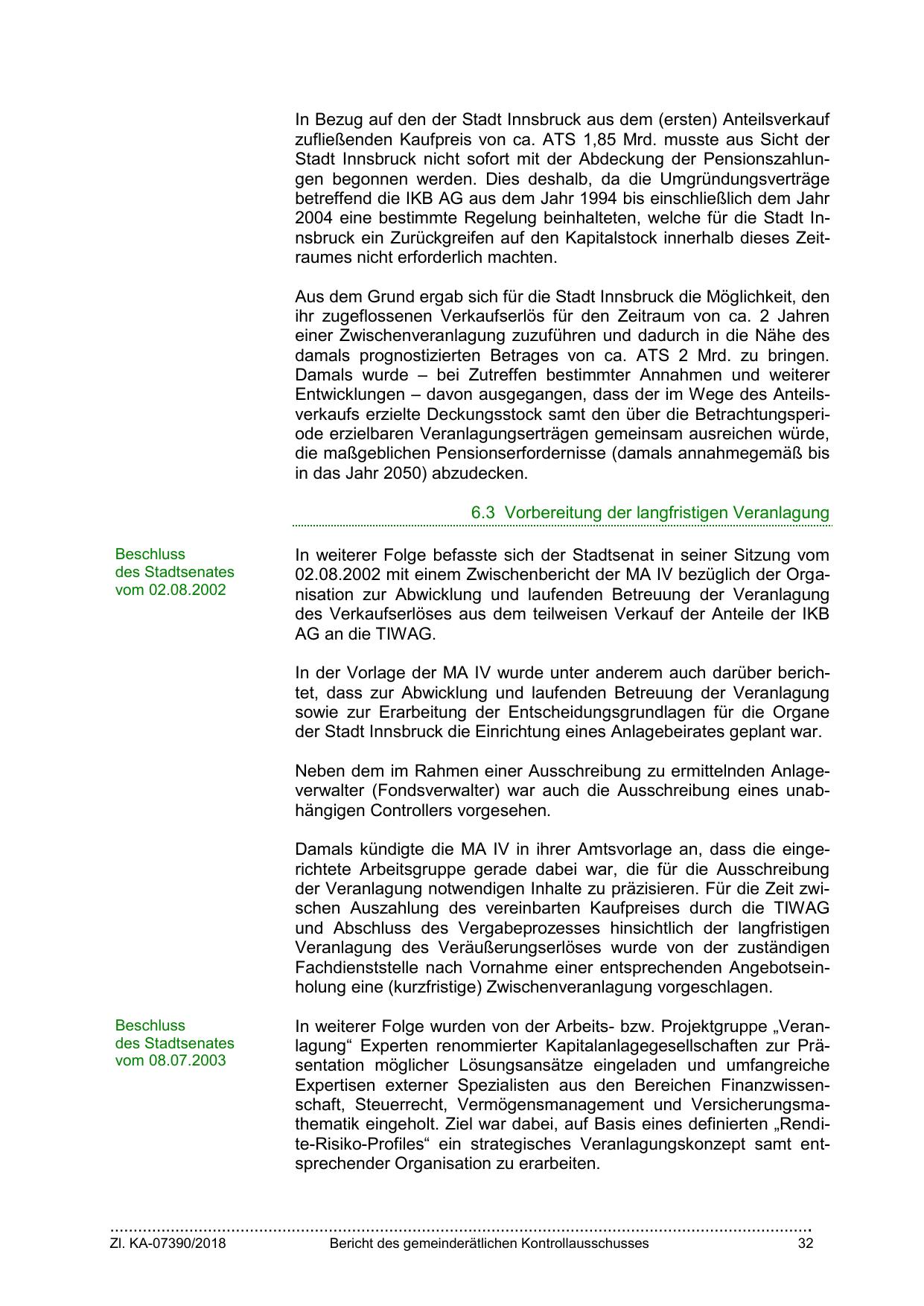 der Stadt Innsbruck die Einrichtung eines Anlagebeirates geplant war.