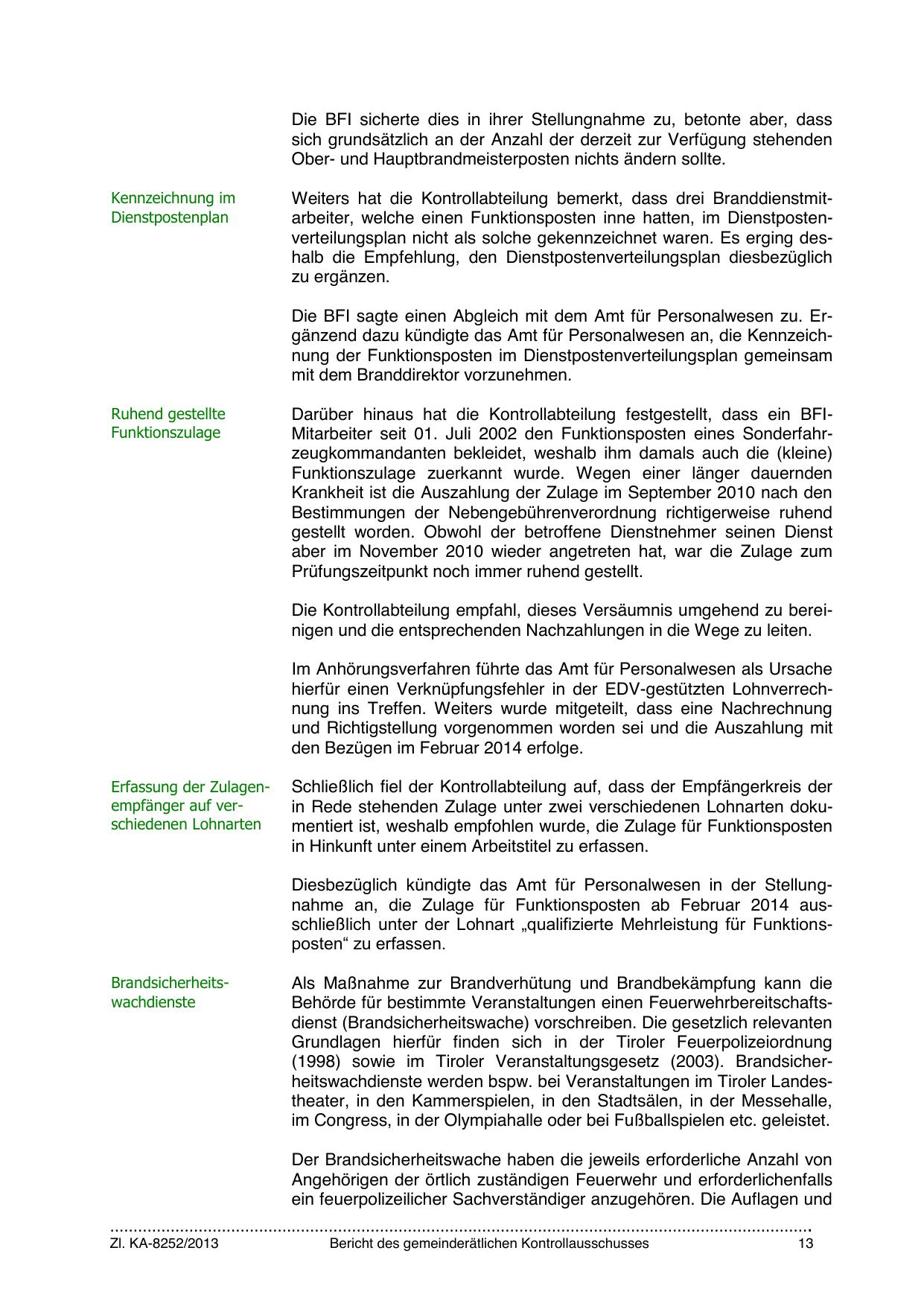 Diesbezüglich kündigte das Amt für Personalwesen in der Stellungnahme an, die Zulage für Funktionsposten ab Februar 2014 ausschließlich unter der Lohnart „qualifizierte Mehrleistung für Funktionsposten“ zu erfassen.