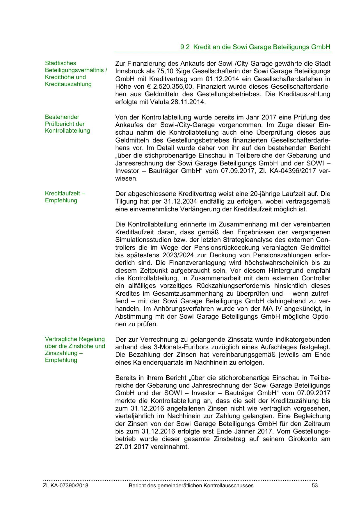 Ankaufes der Sowi-/City-Garage vorgenommen. Im Zuge dieser Einschau nahm die Kontrollabteilung auch eine Überprüfung dieses aus