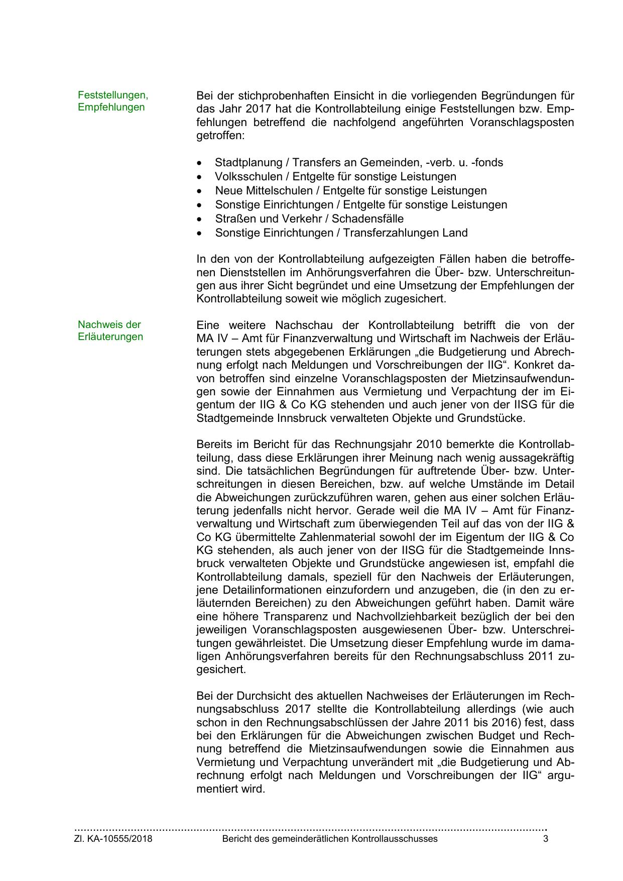 KG stehenden, als auch jener von der IISG für die Stadtgemeinde Innsbruck verwalteten Objekte und Grundstücke angewiesen ist, empfahl die