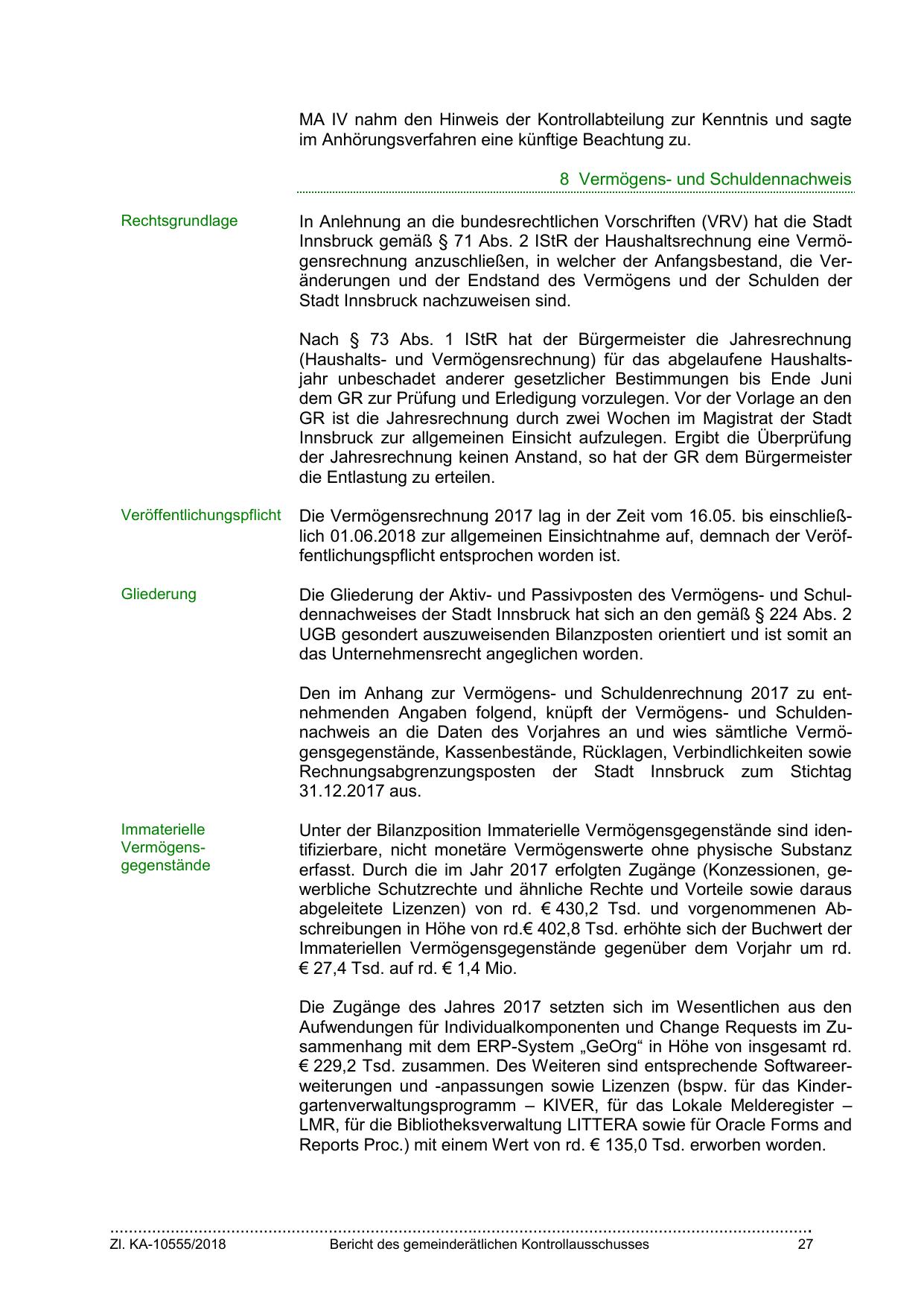 Innsbruck gemäß § 71 Abs. 2 IStR der Haushaltsrechnung eine Vermögensrechnung anzuschließen, in welcher der Anfangsbestand, die Veränderungen und der Endstand des Vermögens und der Schulden der