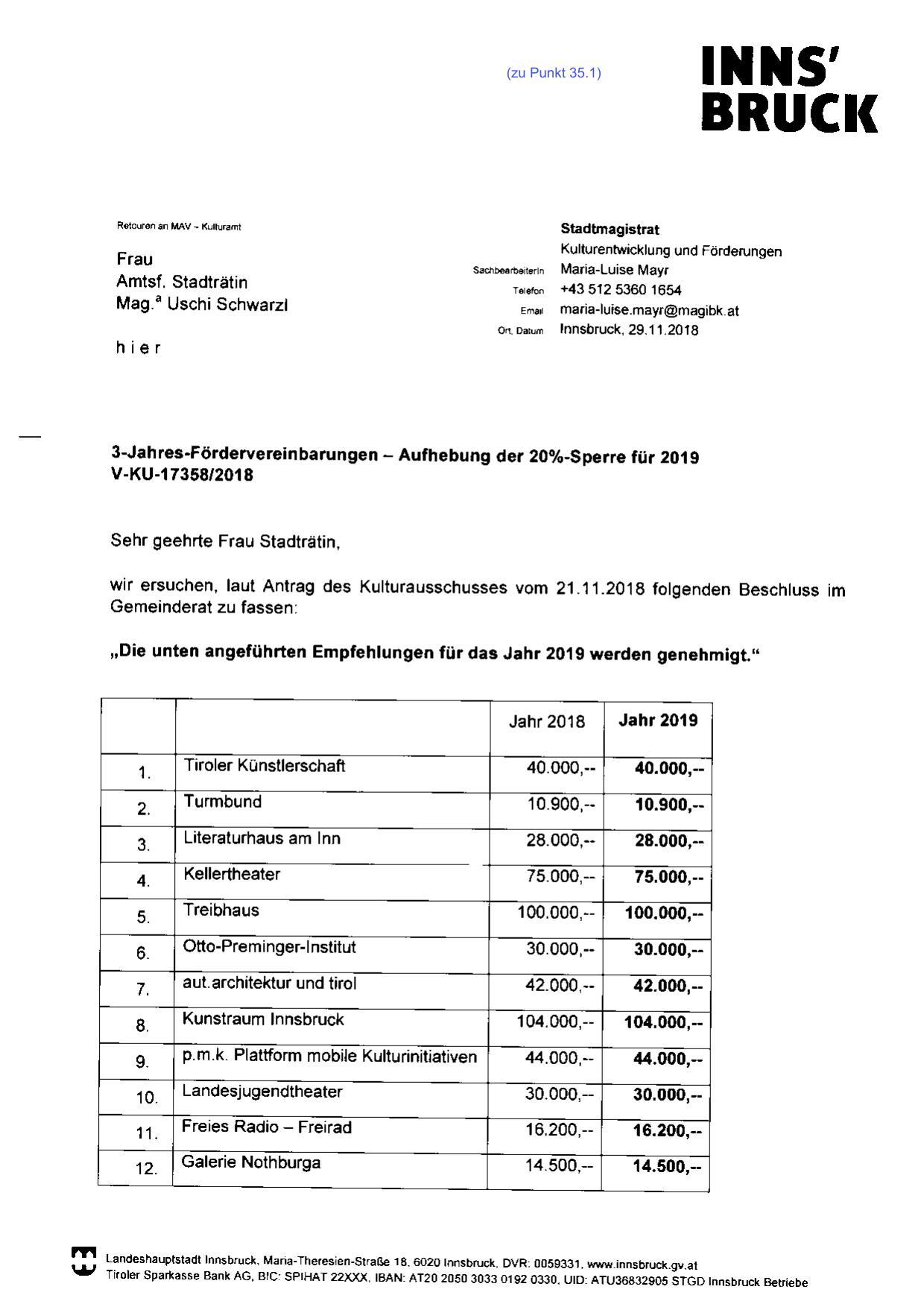 wir ersuchen, laut Antrag des Kulturausschusses vom 21.11.2018 folgenden Beschluss im