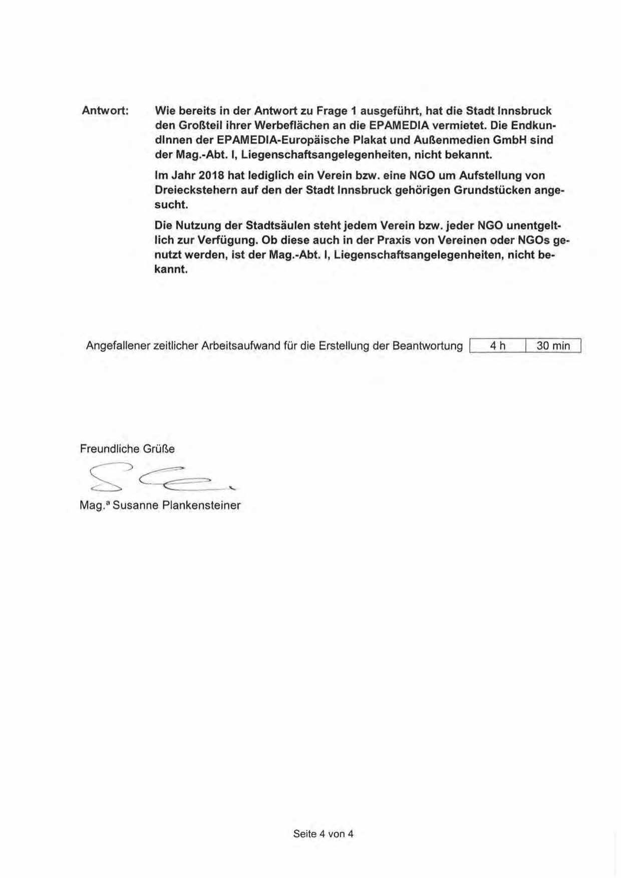 Wie bereits in der Antwort zu Frage 1 ausgeführt, hat die Stadt Innsbruck