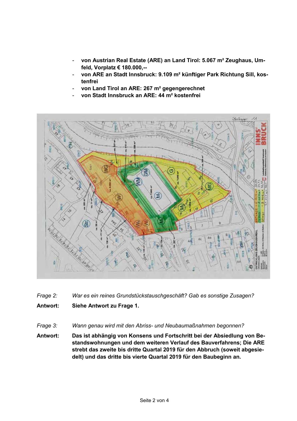 von Austrian Real Estate (ARE) an Land Tirol: 5.067 m² Zeughaus, Umfeld, Vorplatz € 180.000,-von ARE an Stadt Innsbruck: 9.109 m² künftiger Park Richtung Sill, kostenfrei