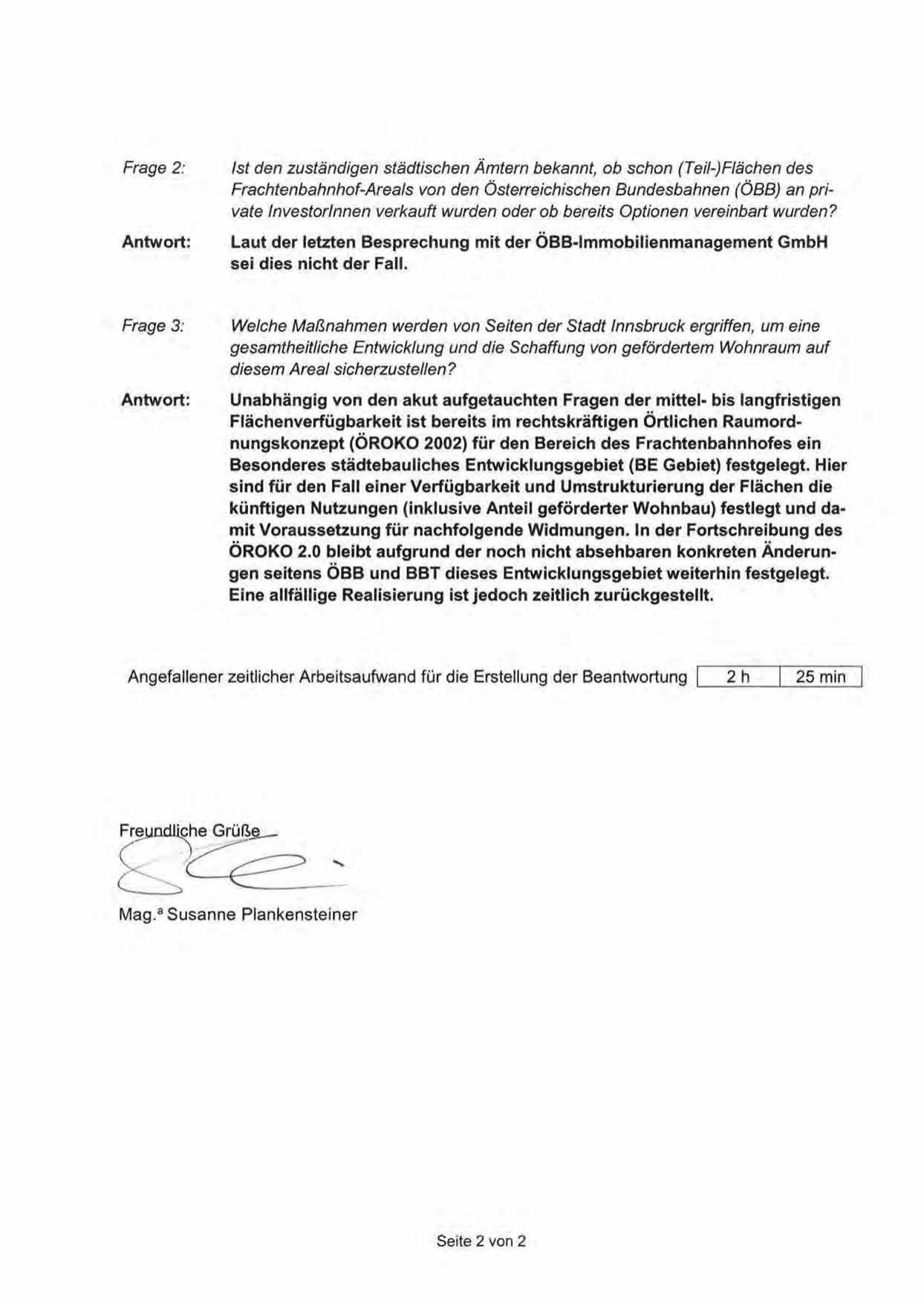 Frachtenbahnhof-Areals von den Österreichischen Bundesbahnen (ÖBB) an private lnvestorlnnen verkauft wurden oder ob bereits Optionen vereinbart wurden?