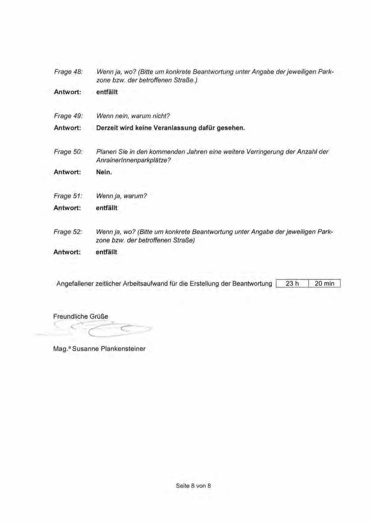Angefallener zeitlicher Arbeitsaufwand für die Erstellung der Beantwortung ~