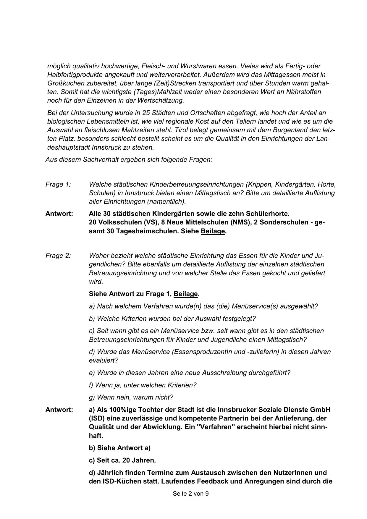 Schulen) in Innsbruck bieten einen Mittagstisch an? Bitte um detaillierte Auflistung