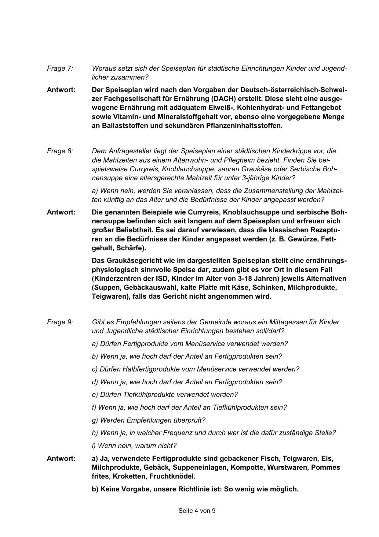 Dem Anfragesteller liegt der Speiseplan einer städtischen Kinderkrippe vor, die