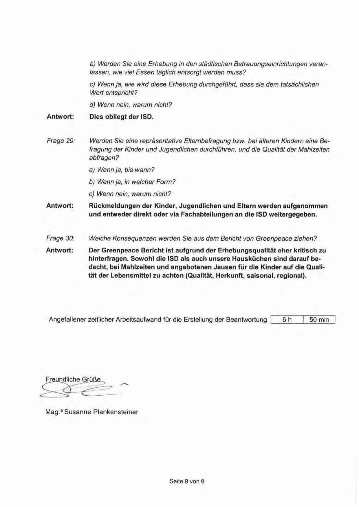 Welche Konsequenzen werden Sie aus dem Bericht von Greenpeace ziehen?
