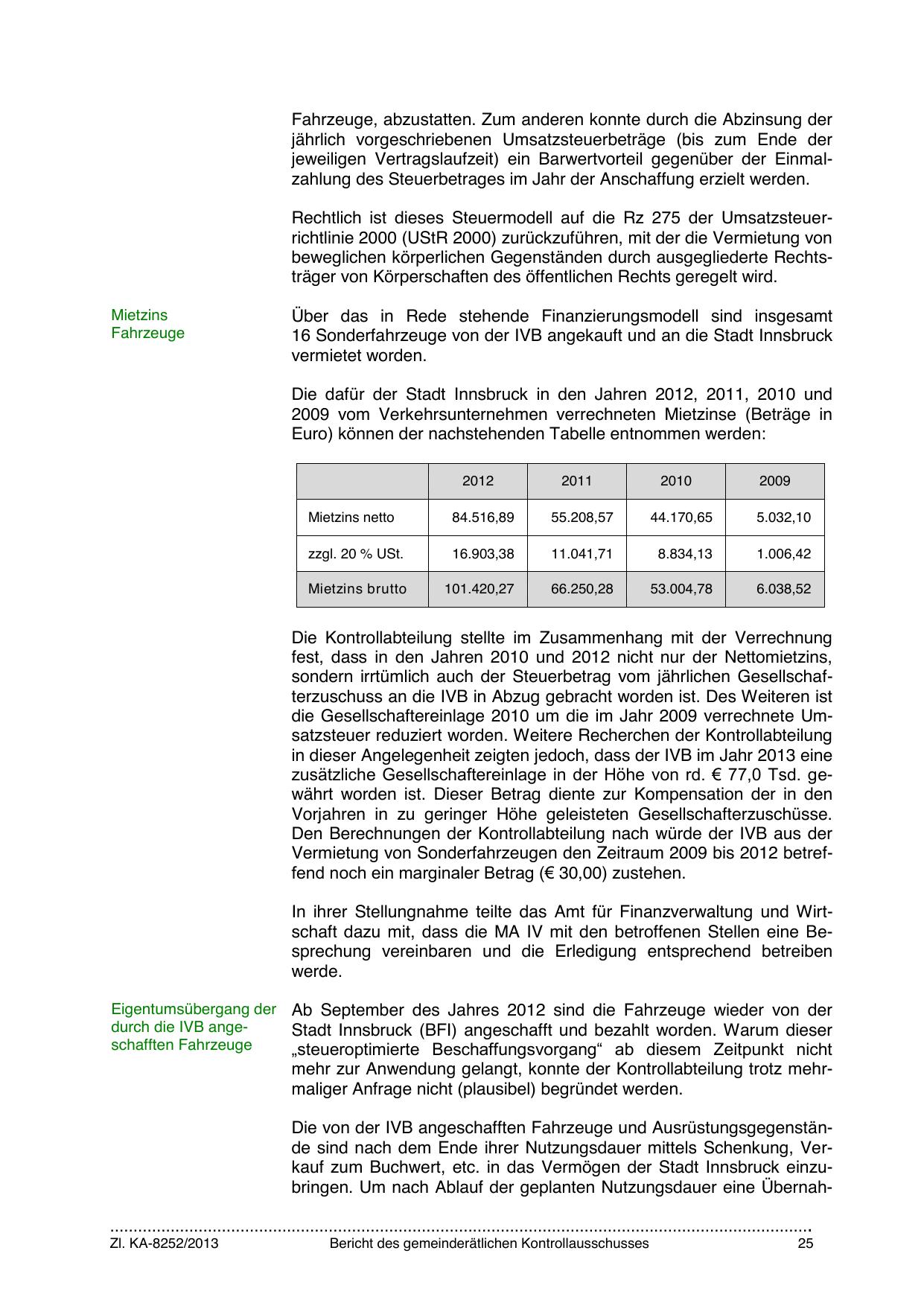 Vermietung von Sonderfahrzeugen den Zeitraum 2009 bis 2012 betreffend noch ein marginaler Betrag (€ 30,00) zustehen.