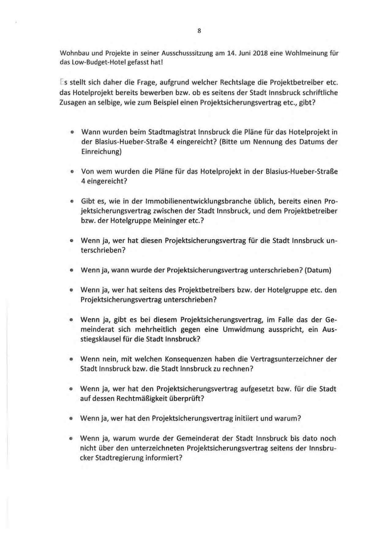 das Hotelprojekt bereits bewerben bzw. ob es seitens der Stadt Innsbruck schriftliche
