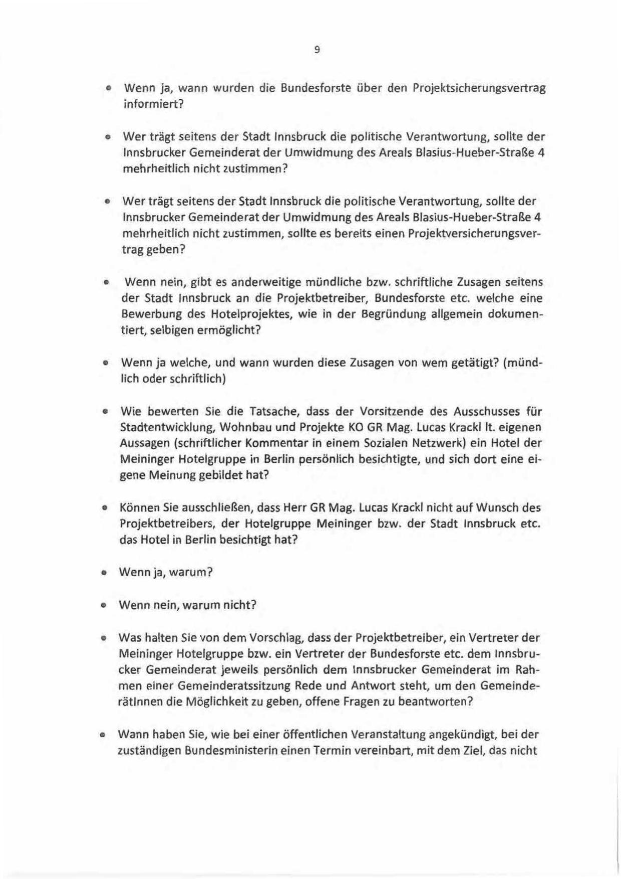 Meininger Hotelgruppe bzw. ein Vertreter der Bundesforste etc. dem lnnsbrucker Gemeinderat jeweils persönlich dem lnnsbrucker Gemeinderat im Rahmen einer Gemeinderatssitzung Rede und Antwort steht, um den Gemeinderätinnen die Möglichkeit zu geben, offene Fragen zu beantworten?