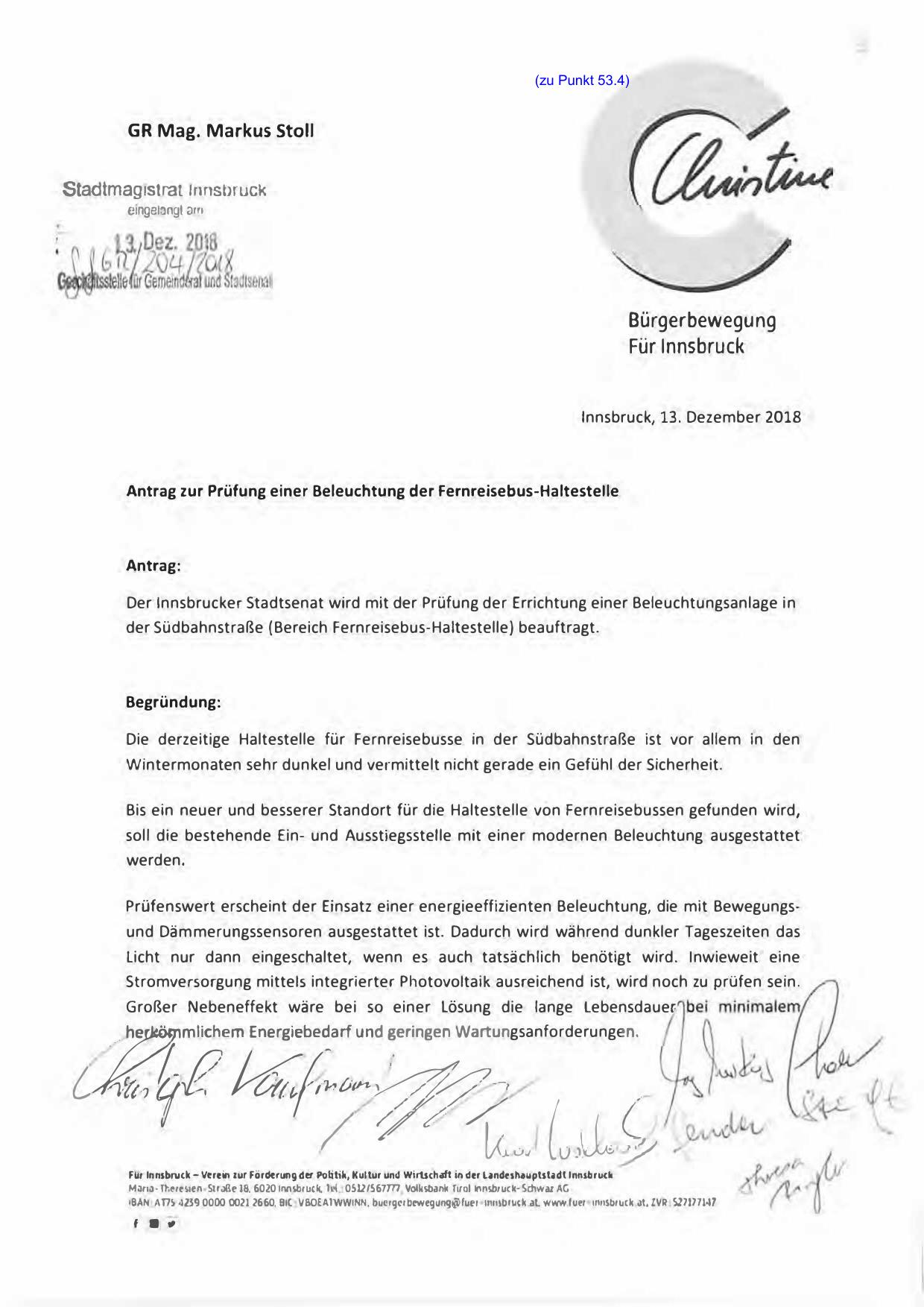 Antrag zur Prüfung einer Beleuchtung der Fernreisebus-Haltestelle