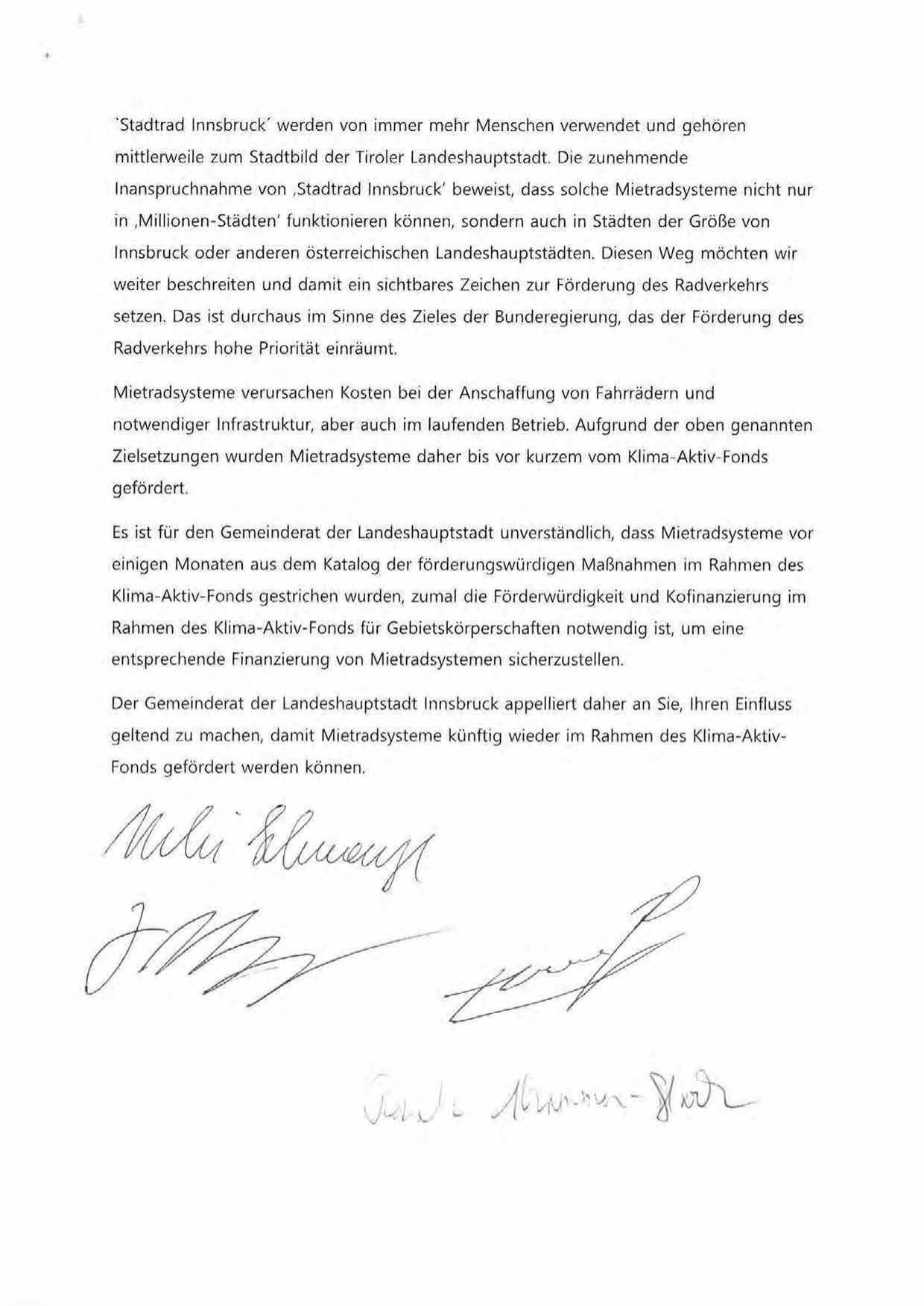Der Gemeinderat der Landeshauptstadt Innsbruck appelliert daher an Sie, Ihren Einfluss