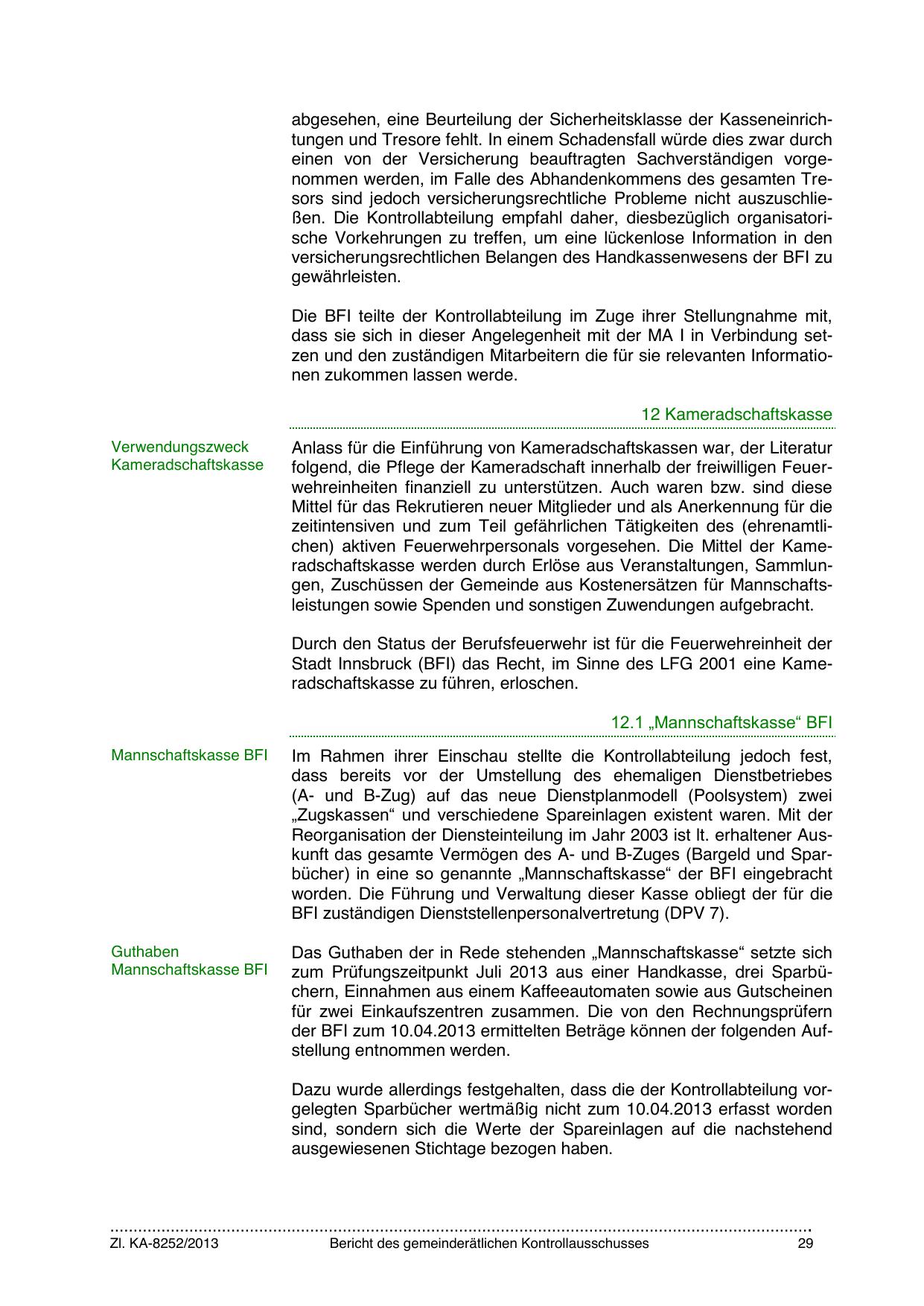 Stadt Innsbruck (BFI) das Recht, im Sinne des LFG 2001 eine Kameradschaftskasse zu führen, erloschen.