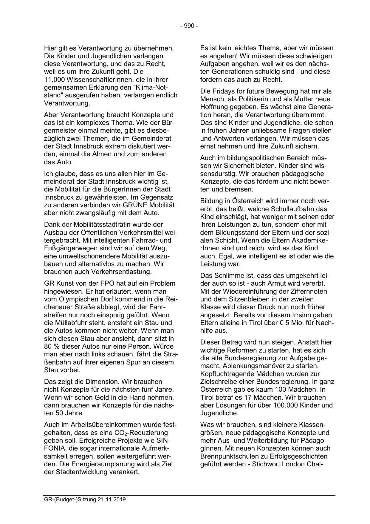 Ich glaube, dass es uns allen hier im Gemeinderat der Stadt Innsbruck wichtig ist,