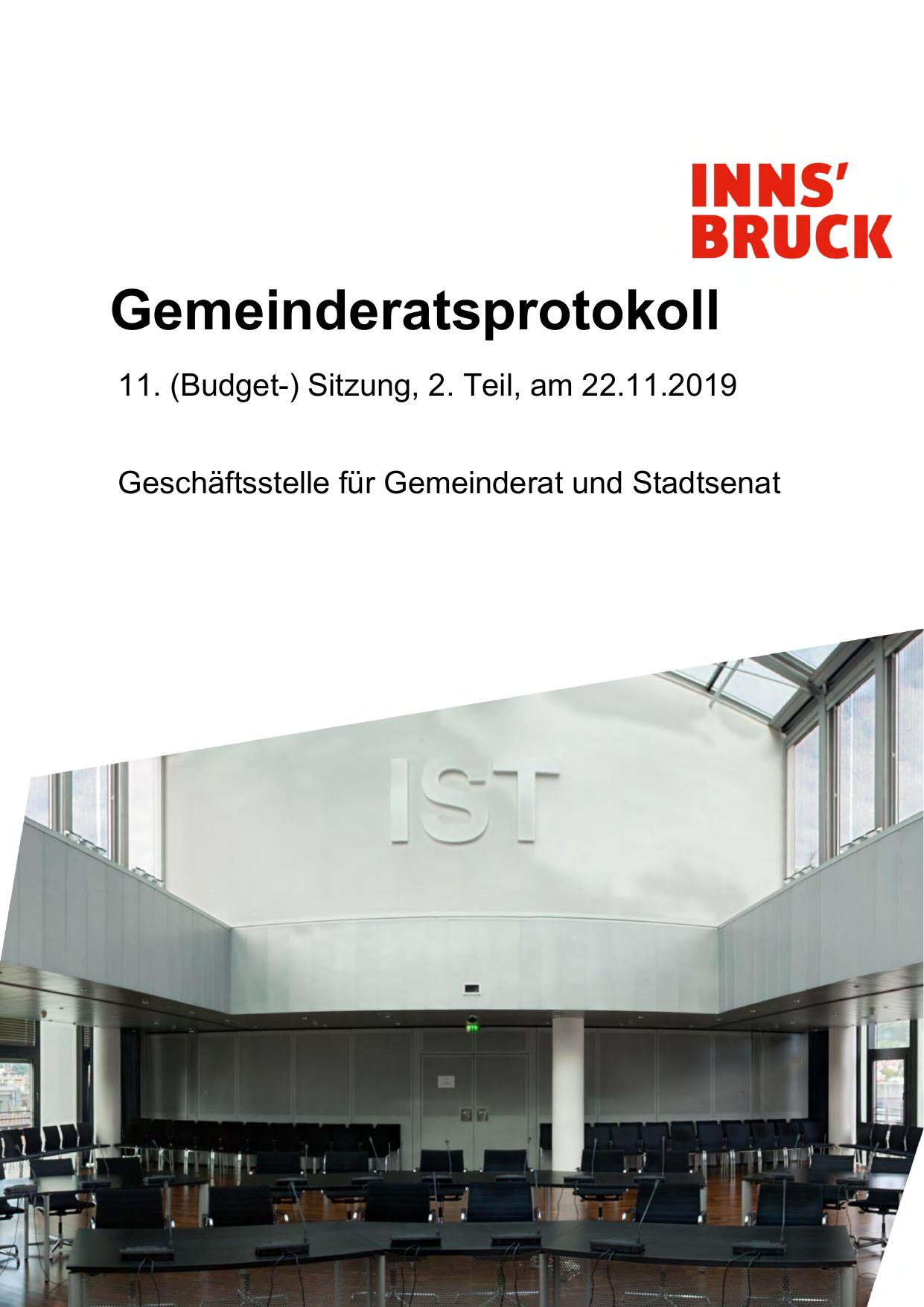 11. (Budget-) Sitzung, 2. Teil, am 22.11.2019