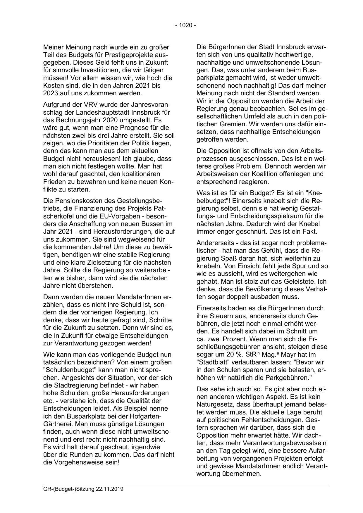 GR-(Budget-)Sitzung 22.11.2019