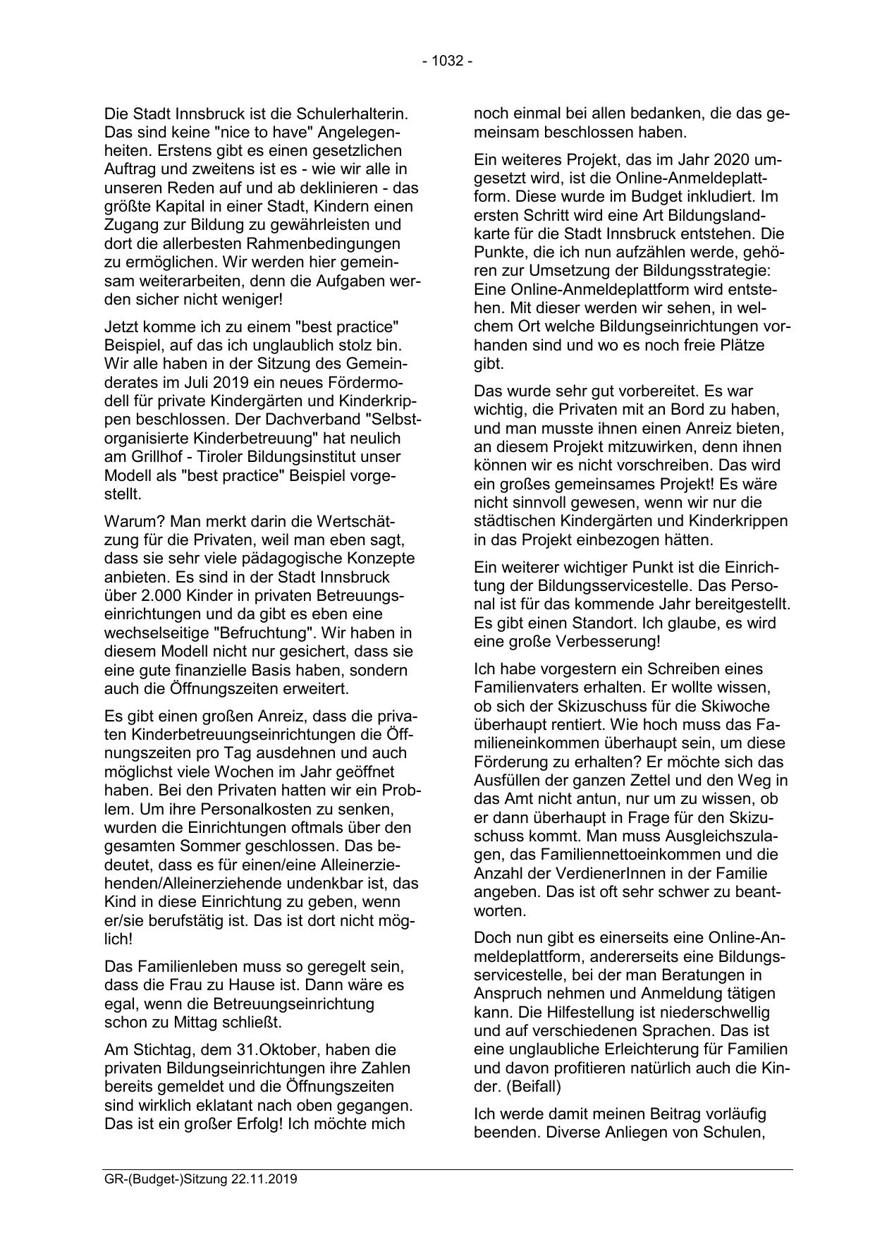 Wir alle haben in der Sitzung des Gemeinderates im Juli 2019 ein neues Fördermodell für private Kindergärten und Kinderkrippen beschlossen. Der Dachverband "Selbstorganisierte Kinderbetreuung" hat neulich