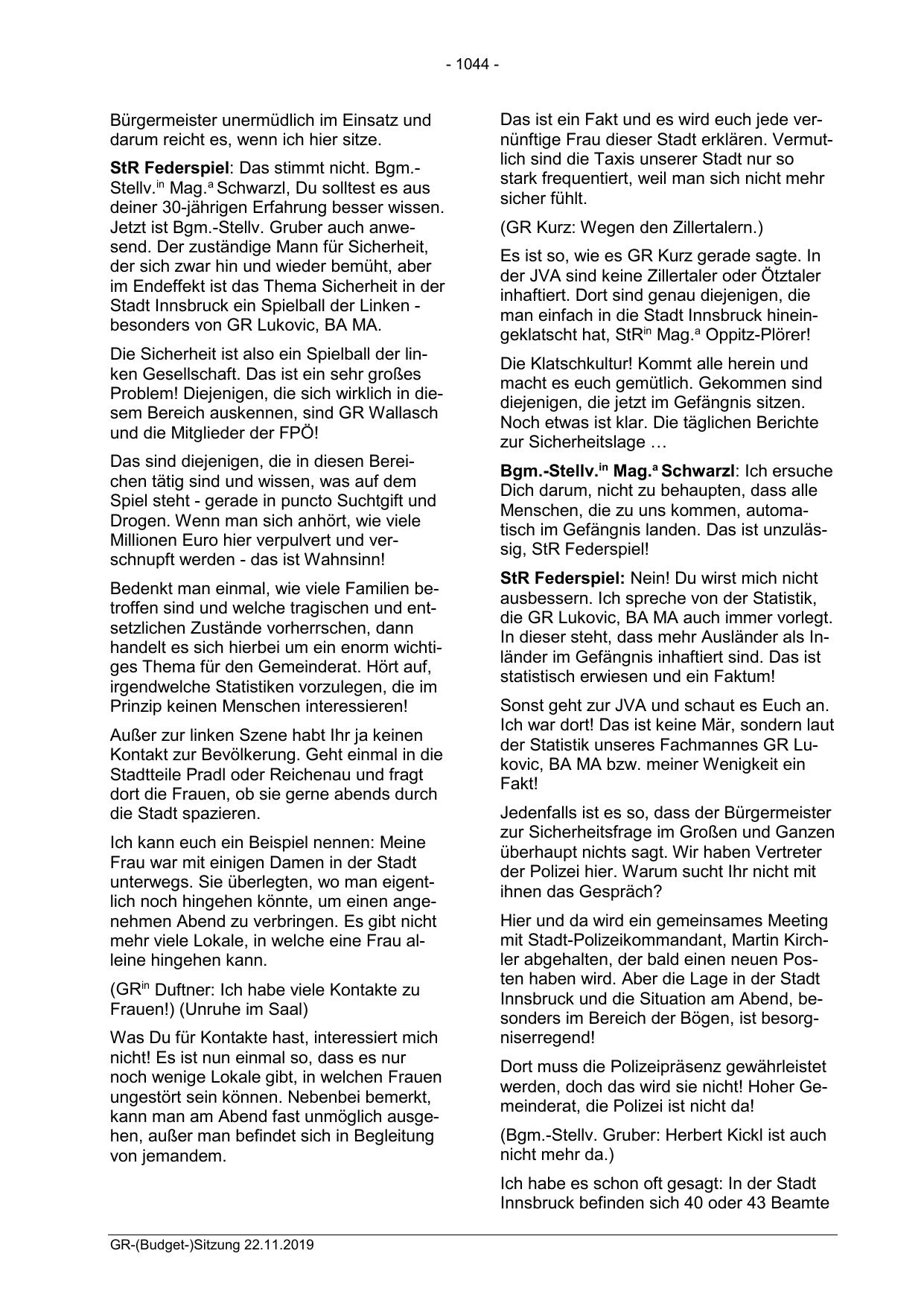 StR Federspiel: Das stimmt nicht. Bgm.Stellv.in Mag.a Schwarzl, Du solltest es aus