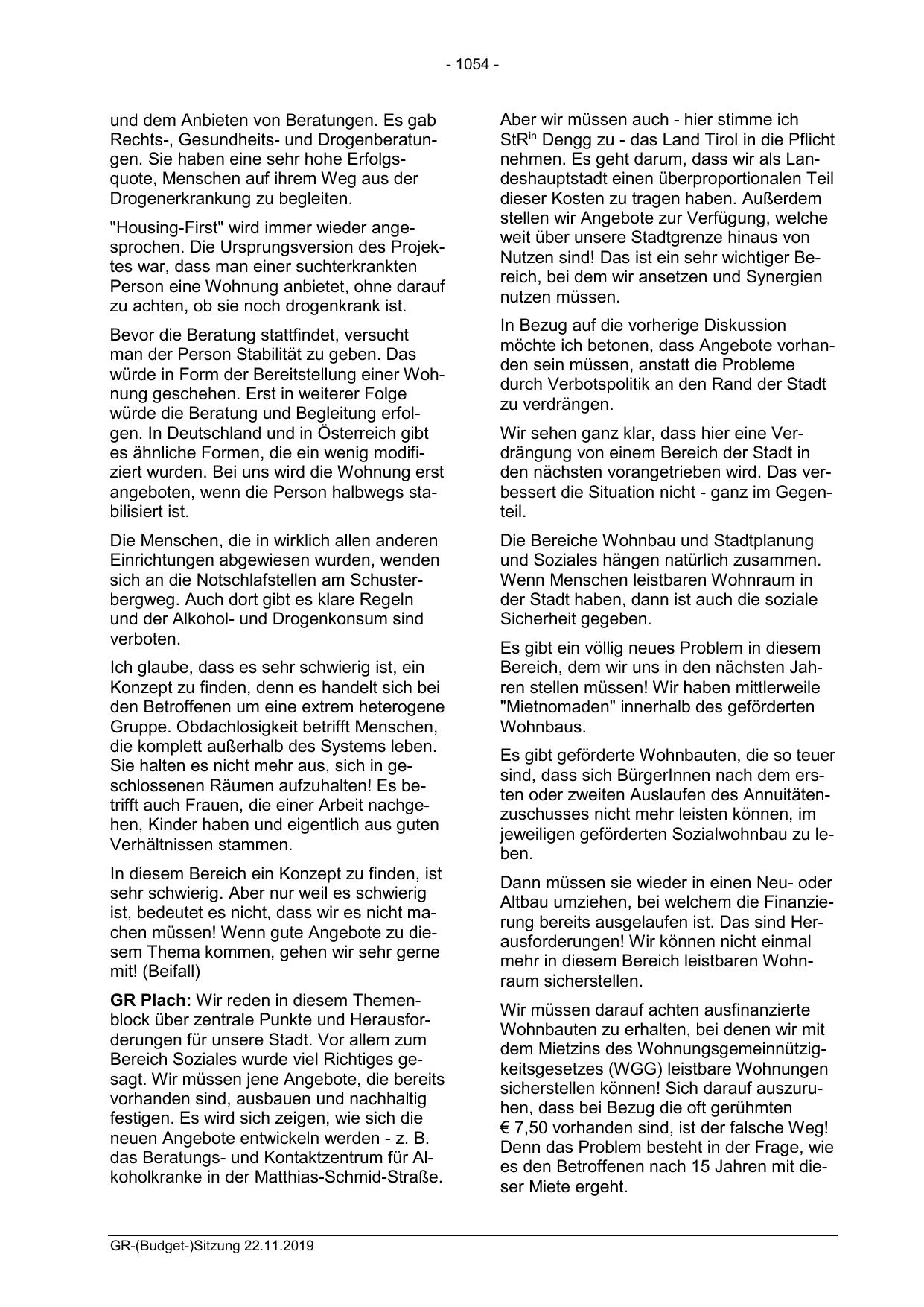 GR Plach: Wir reden in diesem Themenblock über zentrale Punkte und Herausforderungen für unsere Stadt. Vor allem zum