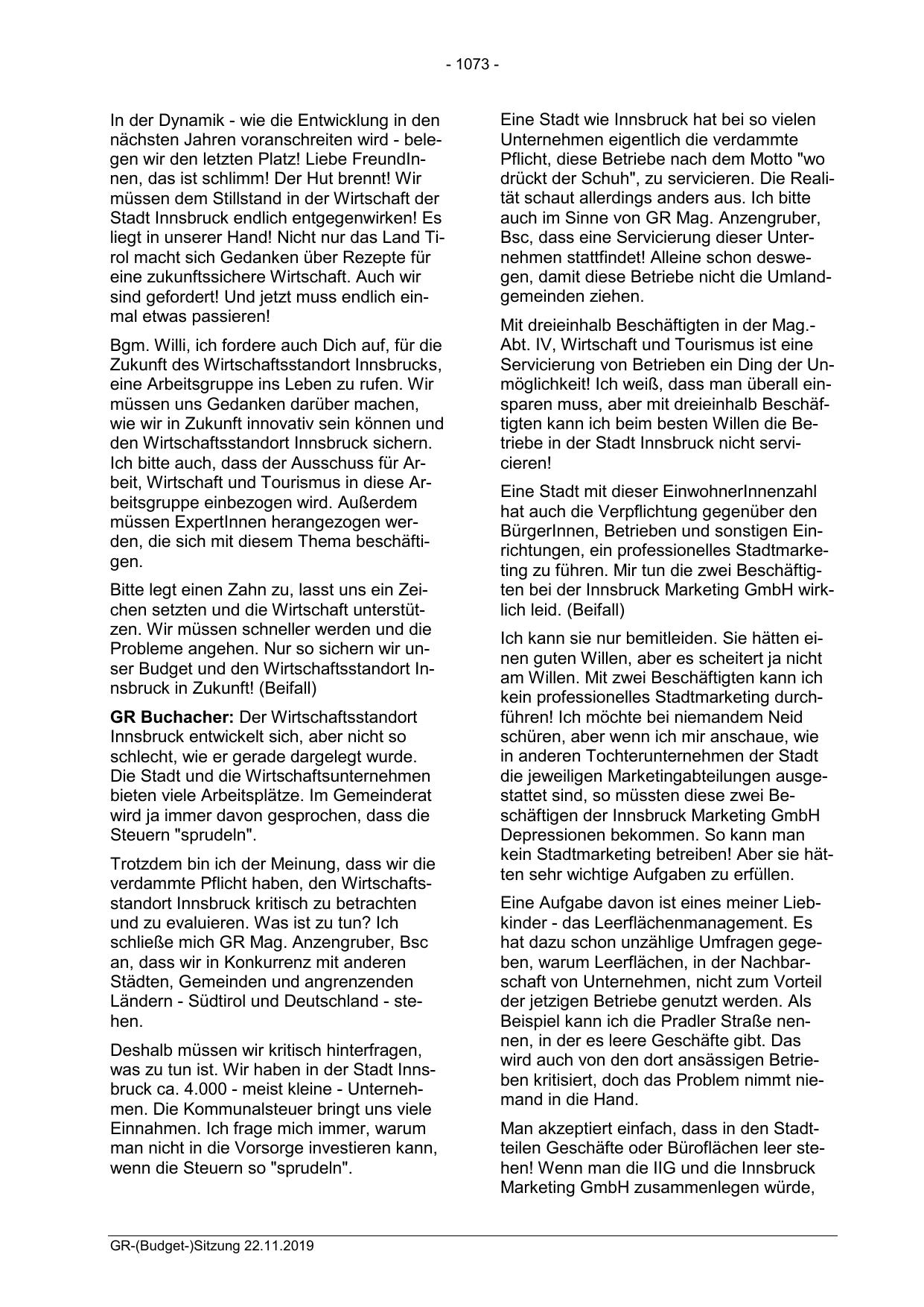 Probleme angehen. Nur so sichern wir unser Budget und den Wirtschaftsstandort Innsbruck in Zukunft! (Beifall)