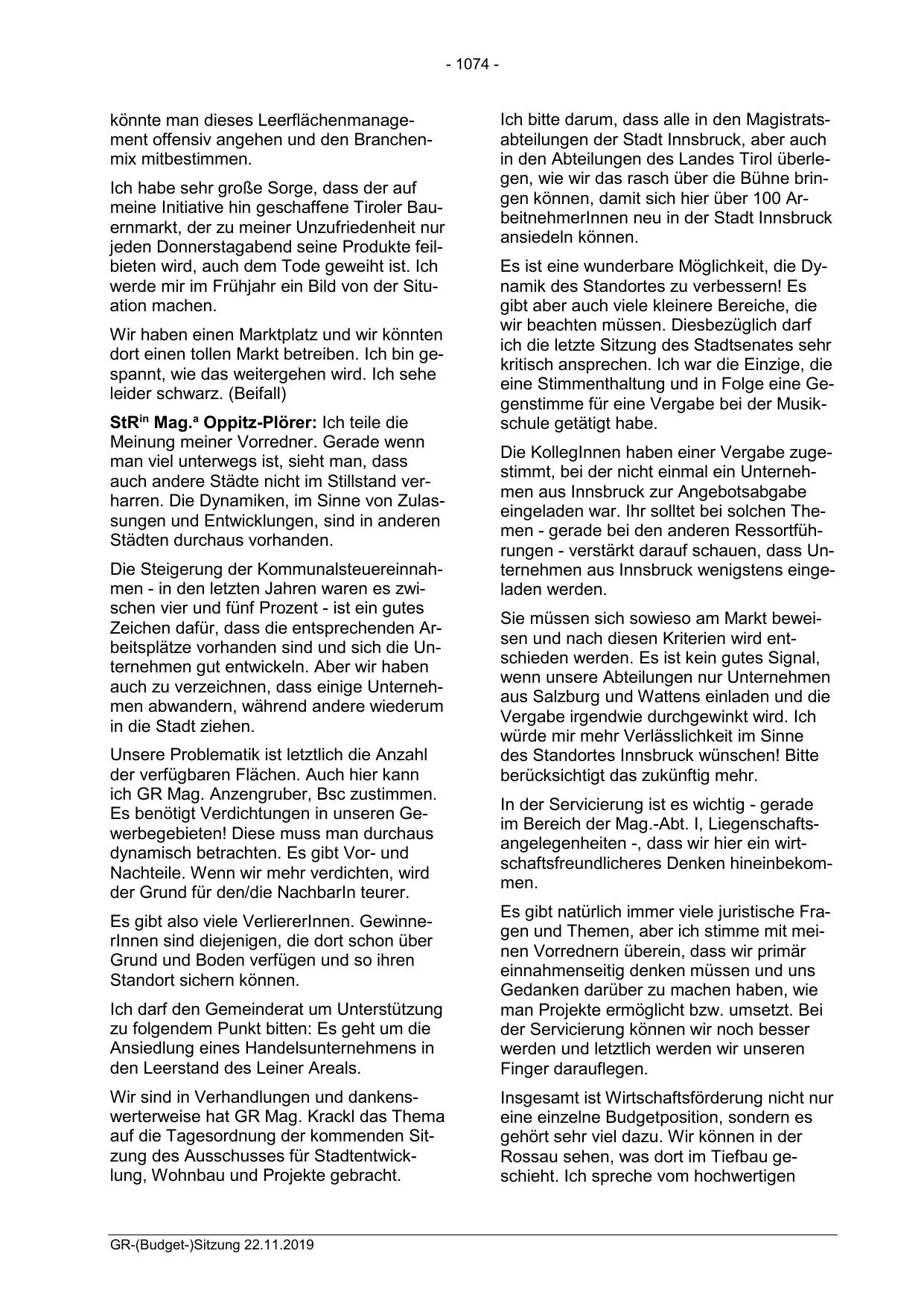 eingeladen war. Ihr solltet bei solchen Themen - gerade bei den anderen Ressortführungen - verstärkt darauf schauen, dass Unternehmen aus Innsbruck wenigstens eingeladen werden.