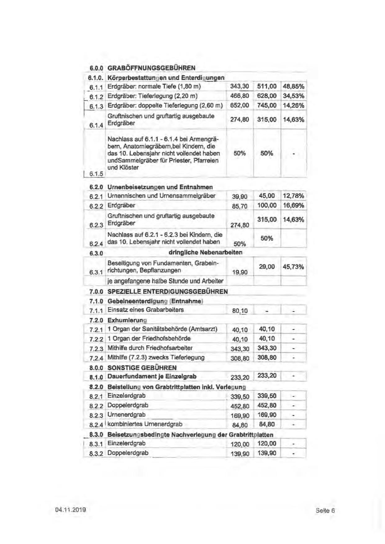 6.0.0 GRABÖFFNUNGSGEBÜHREN