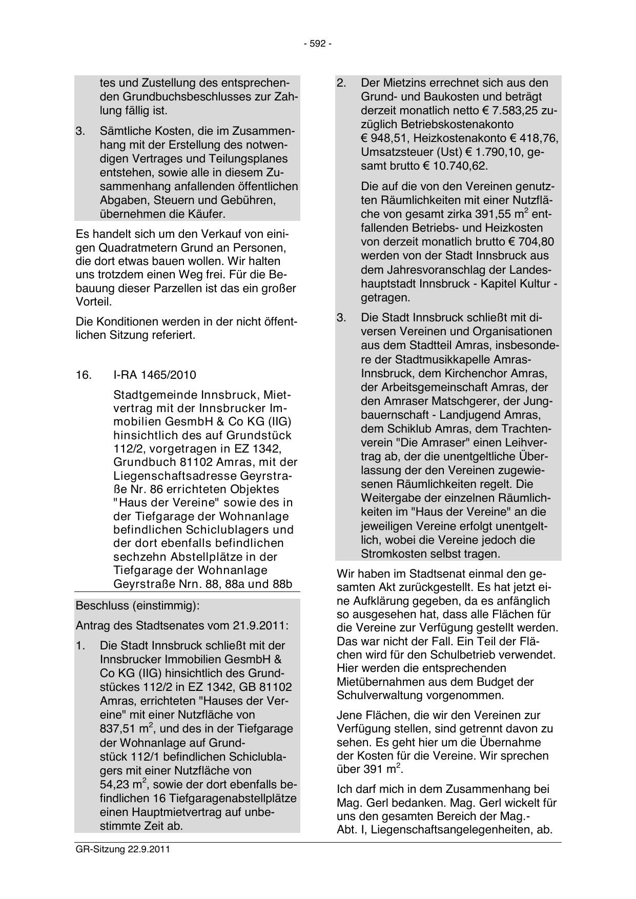 dem Schiklub Amras, dem Trachtenverein "Die Amraser" einen Leihvertrag ab, der die unentgeltliche Überlassung der den Vereinen zugewiesenen Räumlichkeiten regelt. Die
