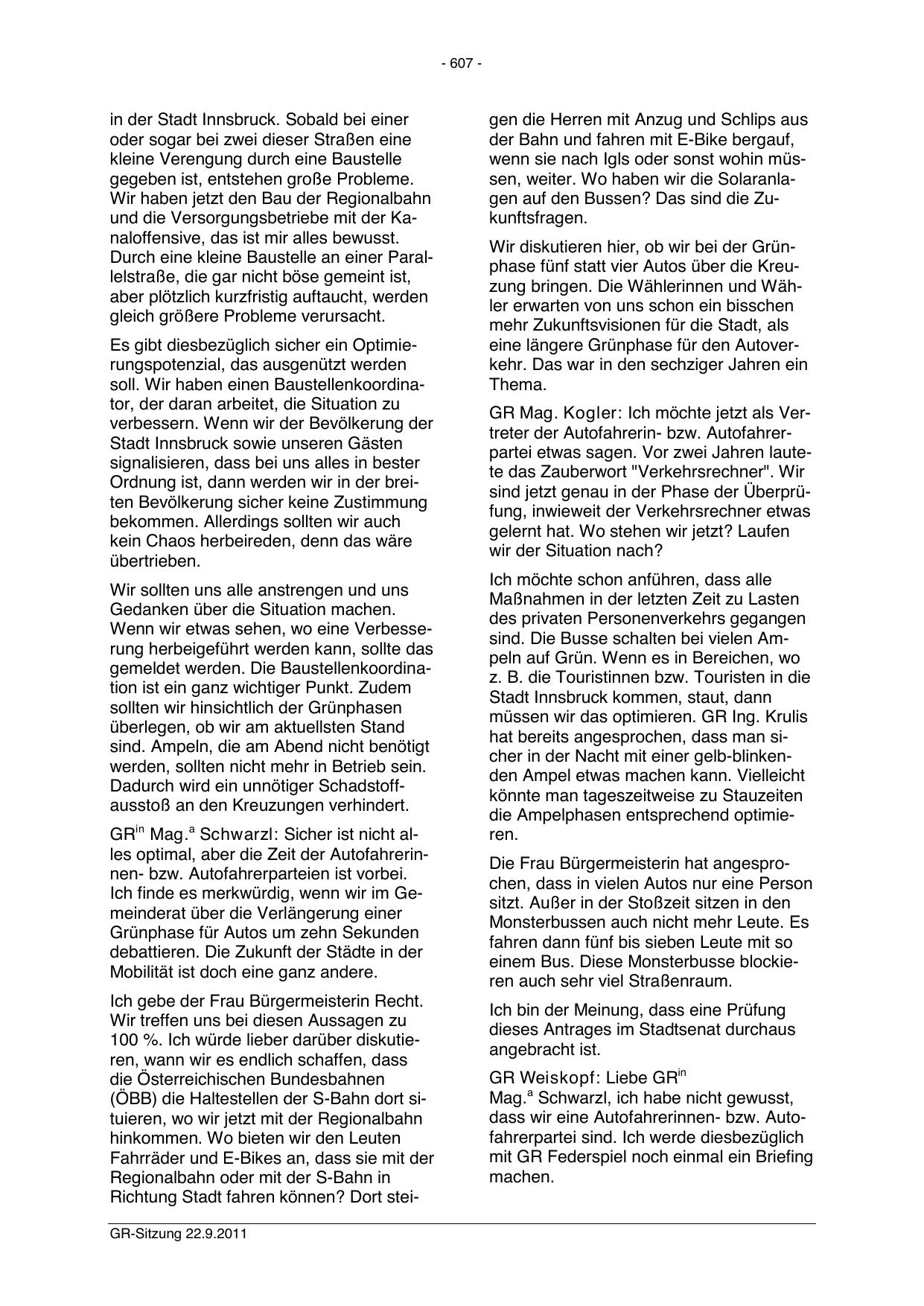 GRin Mag.a Schwarzl: Sicher ist nicht alles optimal, aber die Zeit der Autofahrerinnen- bzw. Autofahrerparteien ist vorbei.