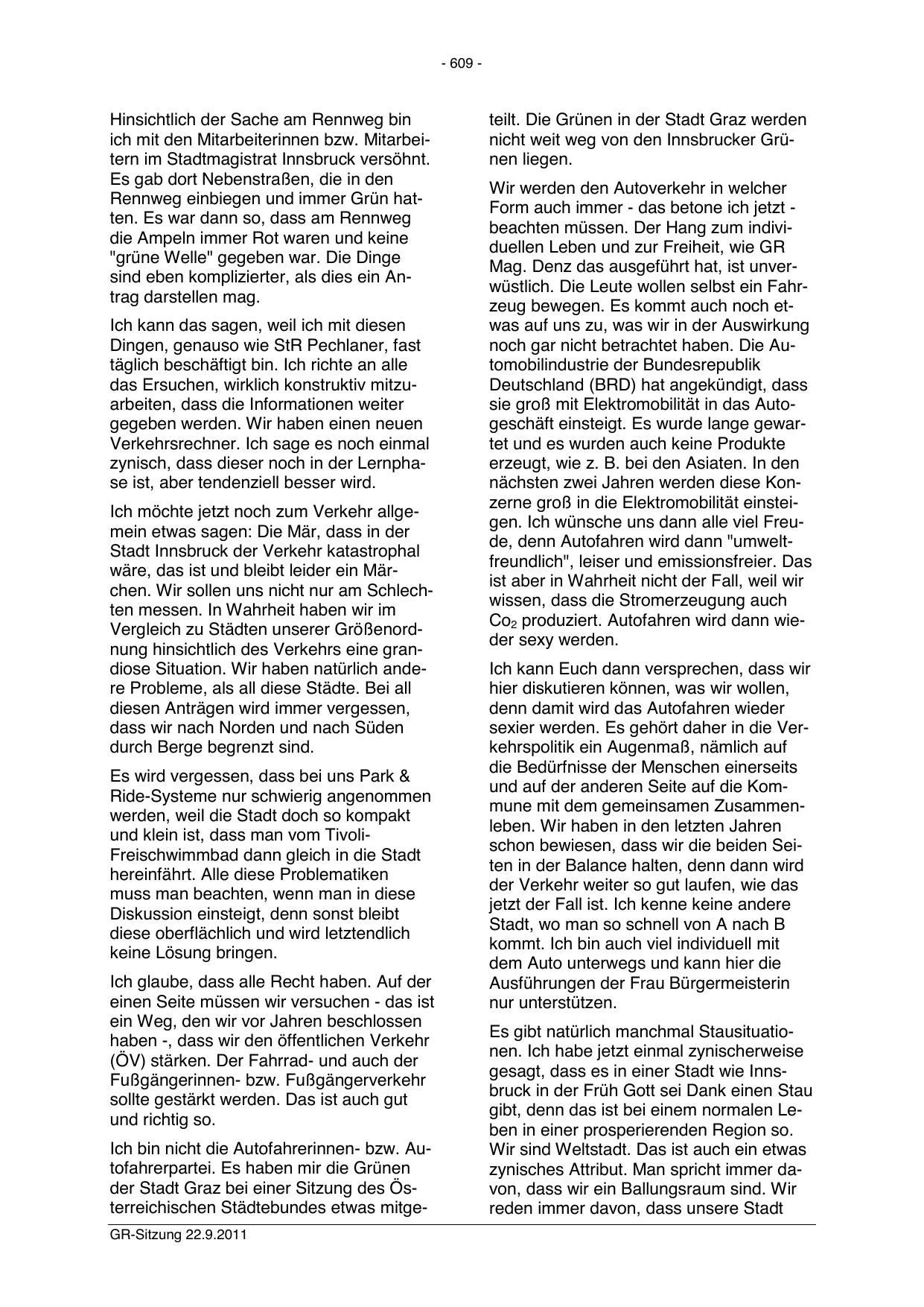 der Stadt Graz bei einer Sitzung des Österreichischen Städtebundes etwas mitgeGR-Sitzung 22.9.2011