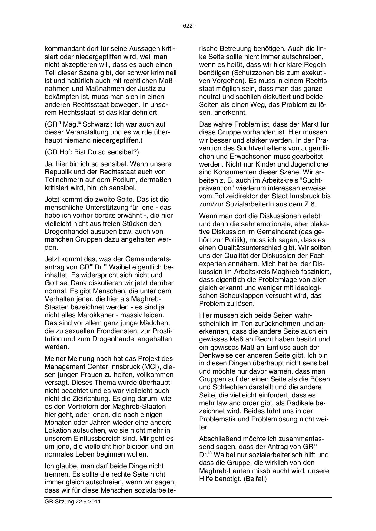 dass wir für diese Menschen sozialarbeiteGR-Sitzung 22.9.2011