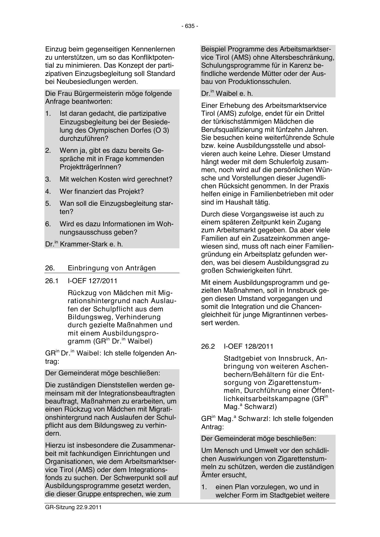 GRin Dr.in Waibel: Ich stelle folgenden Antrag: