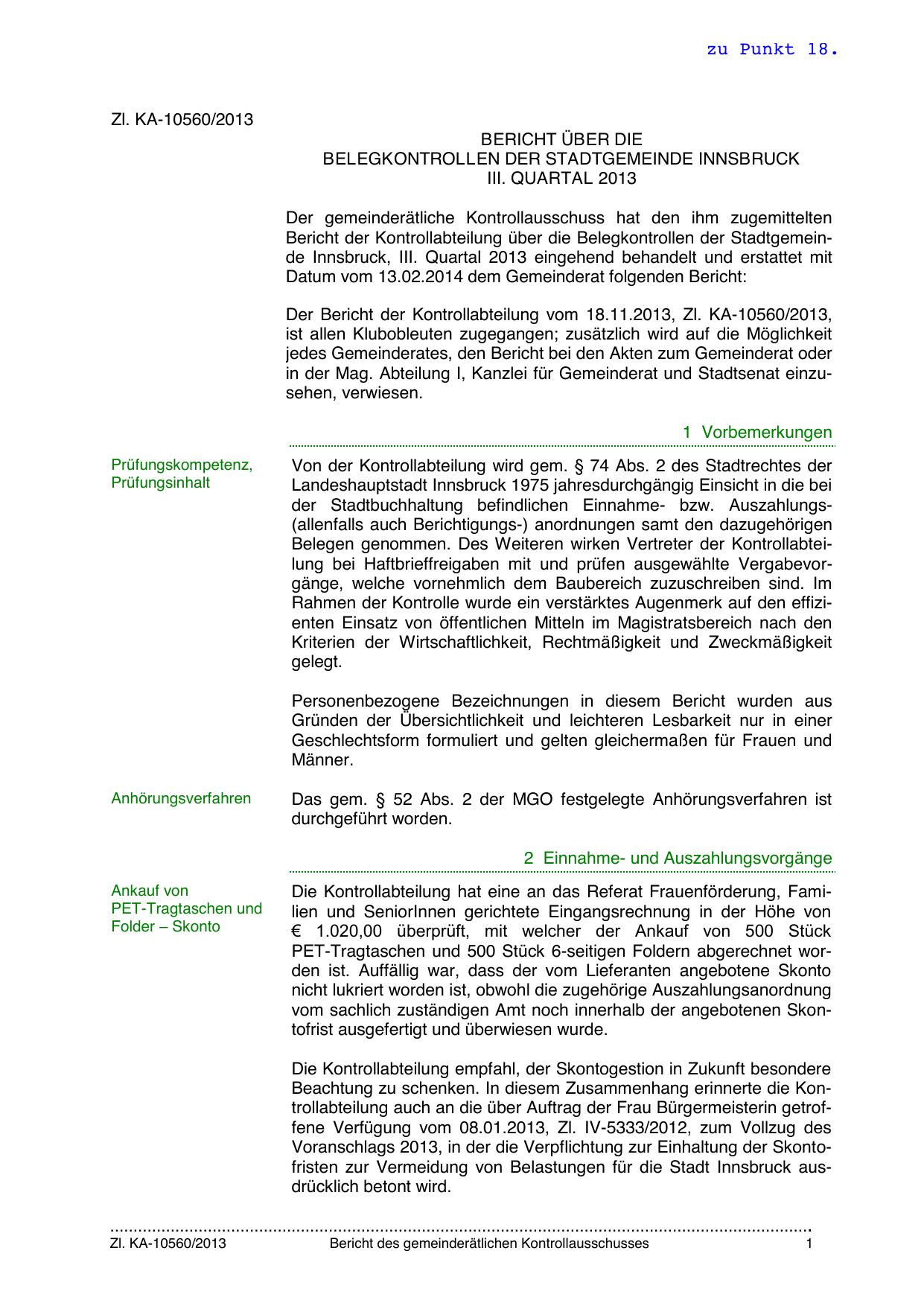 BELEGKONTROLLEN DER STADTGEMEINDE INNSBRUCK