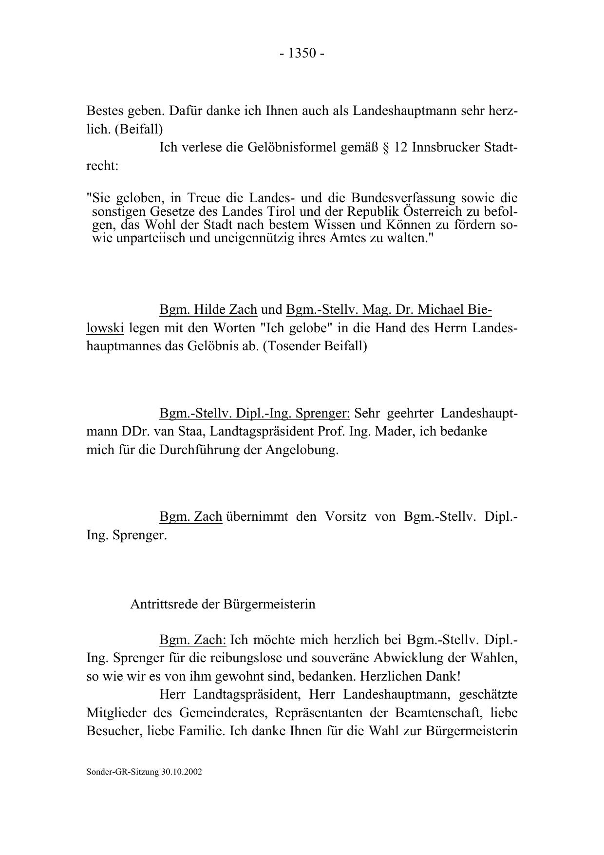 Bgm.-Stellv. Dipl.-Ing. Sprenger: Sehr geehrter Landeshauptmann DDr. van Staa, Landtagspräsident Prof. Ing. Mader, ich bedanke