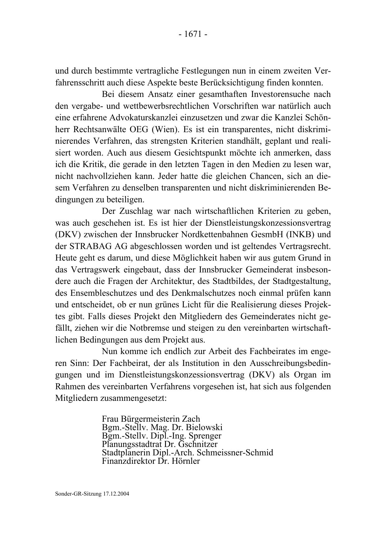 das Vertragswerk eingebaut, dass der Innsbrucker Gemeinderat insbesondere auch die Fragen der Architektur, des Stadtbildes, der Stadtgestaltung,
