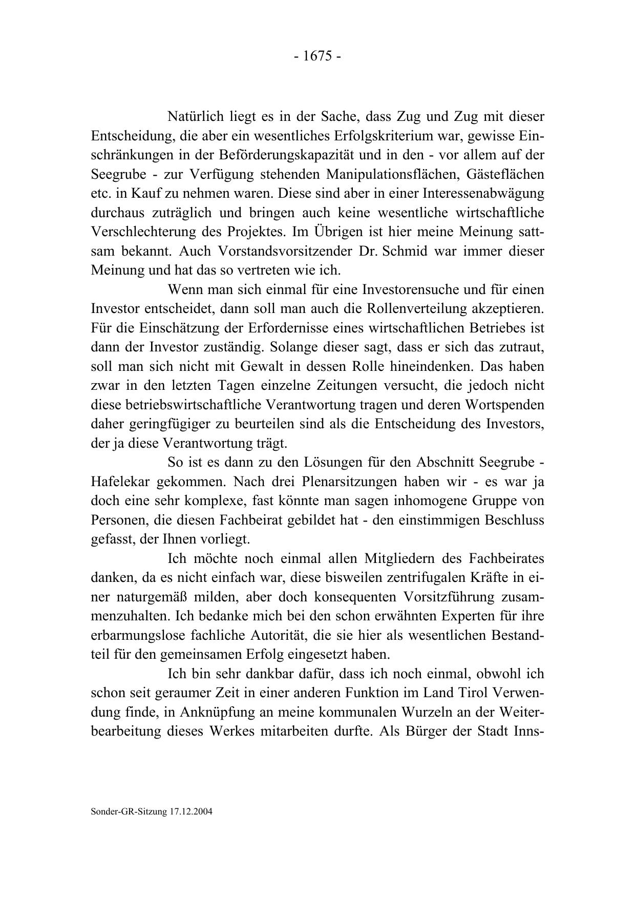 So ist es dann zu den Lösungen für den Abschnitt Seegrube Hafelekar gekommen. Nach drei Plenarsitzungen haben wir - es war ja