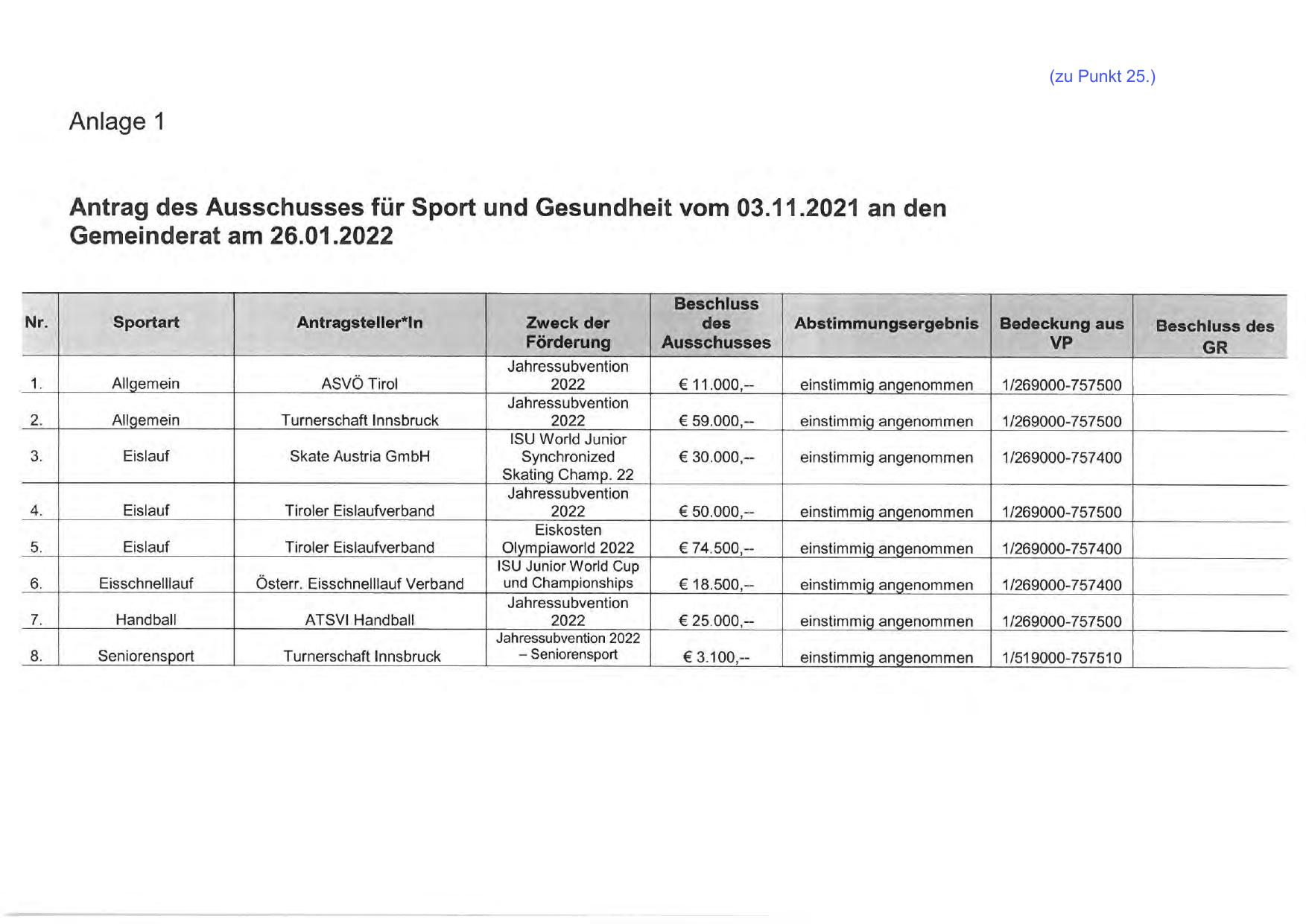 Antrag des Ausschusses für Sport und Gesundheit vom 03.11.2021 an den