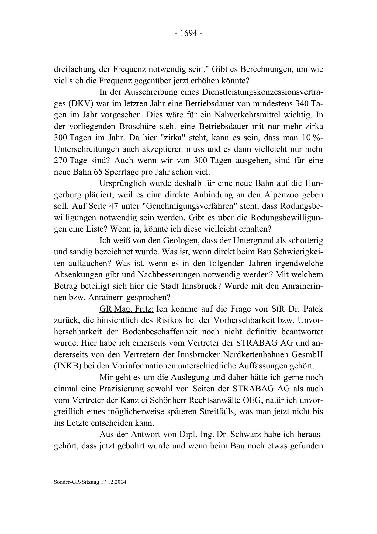 GR Mag. Fritz: Ich komme auf die Frage von StR Dr. Patek