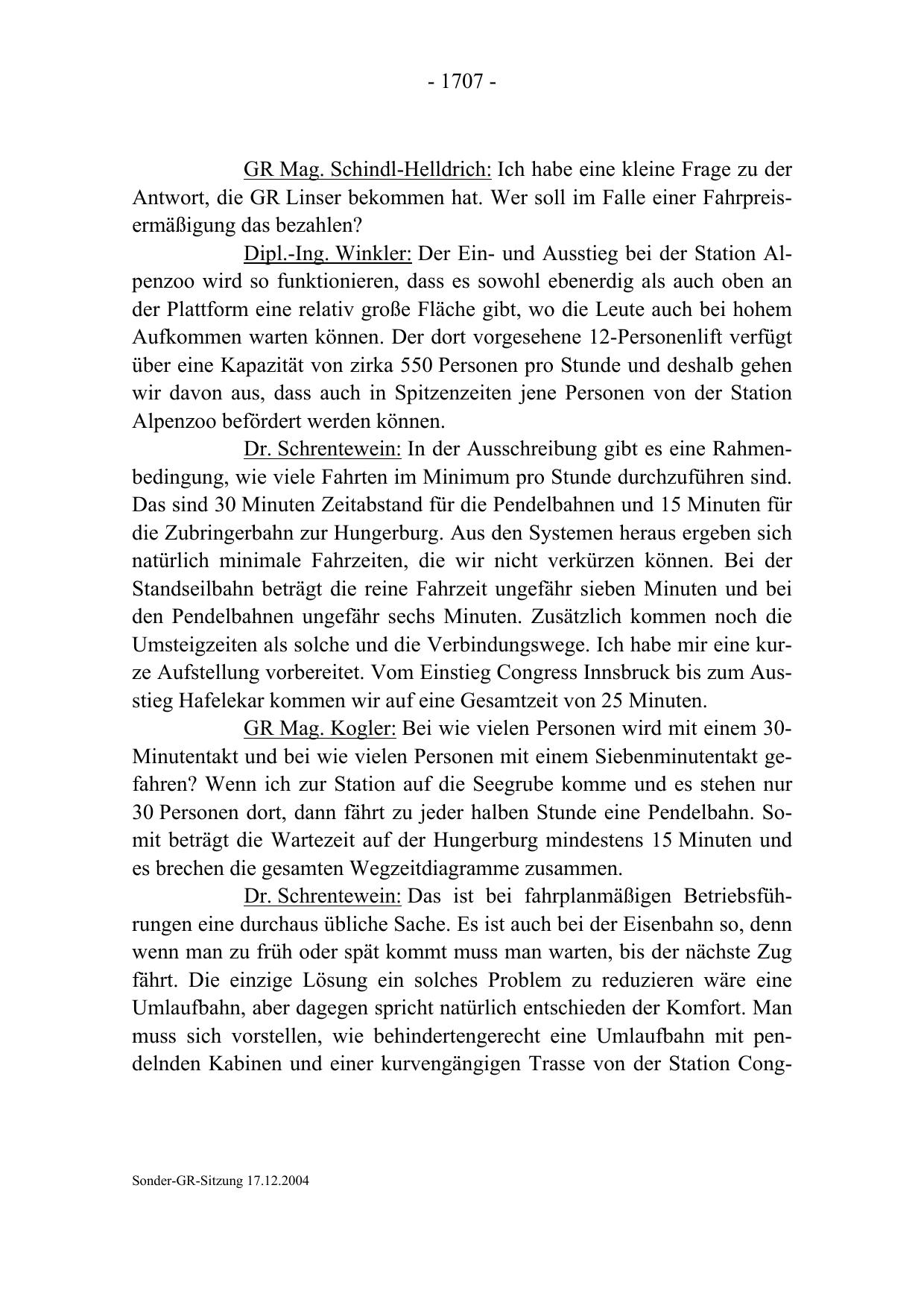 GR Mag. Kogler: Bei wie vielen Personen wird mit einem 30Minutentakt und bei wie vielen Personen mit einem Siebenminutentakt gefahren? Wenn ich zur Station auf die Seegrube komme und es stehen nur