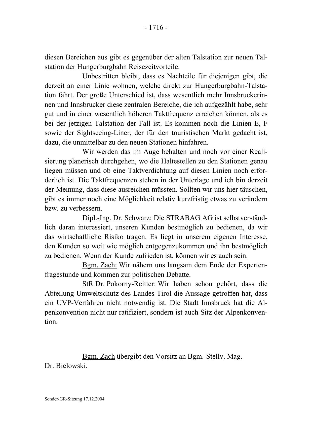 Bgm. Zach: Wir nähern uns langsam dem Ende der Expertenfragestunde und kommen zur politischen Debatte.